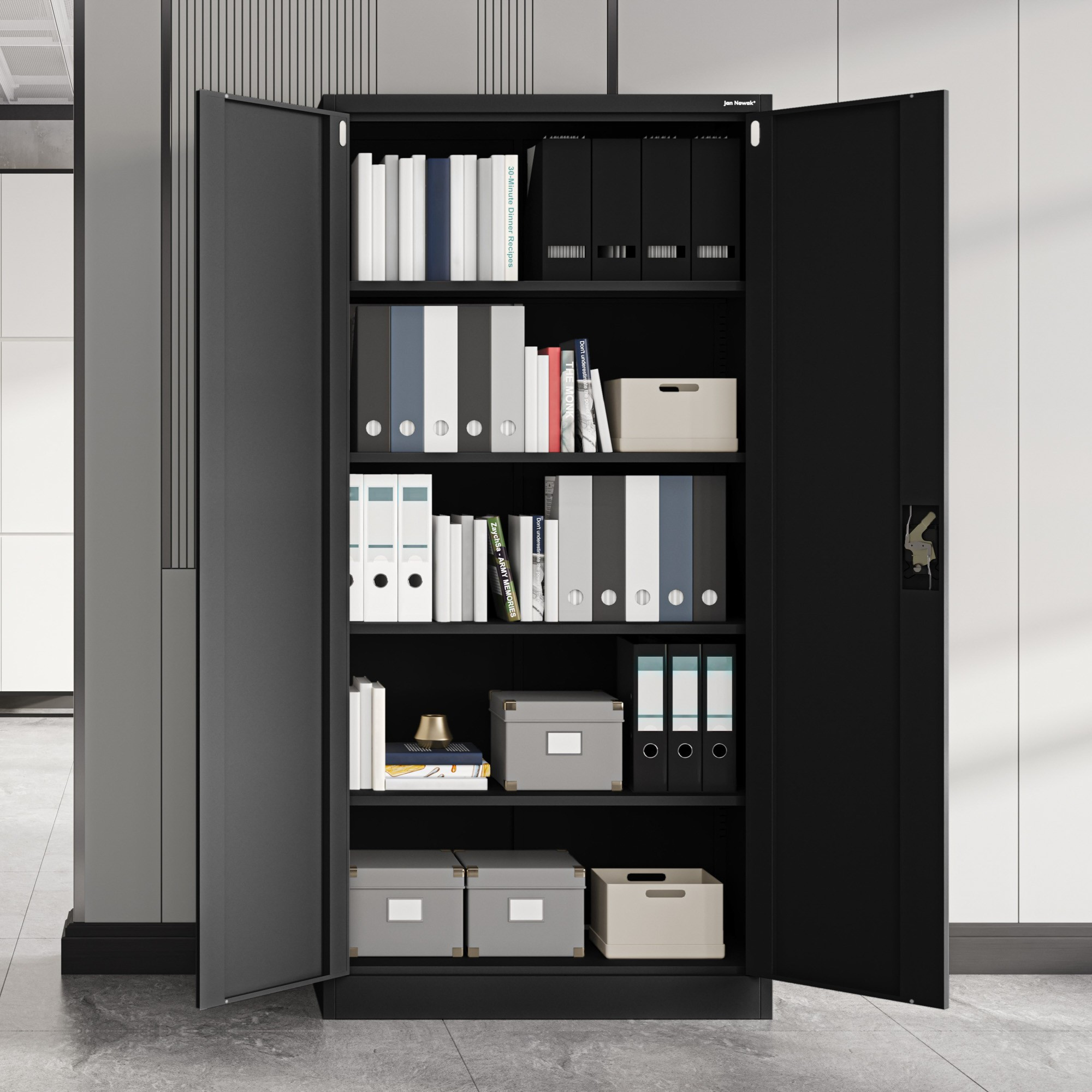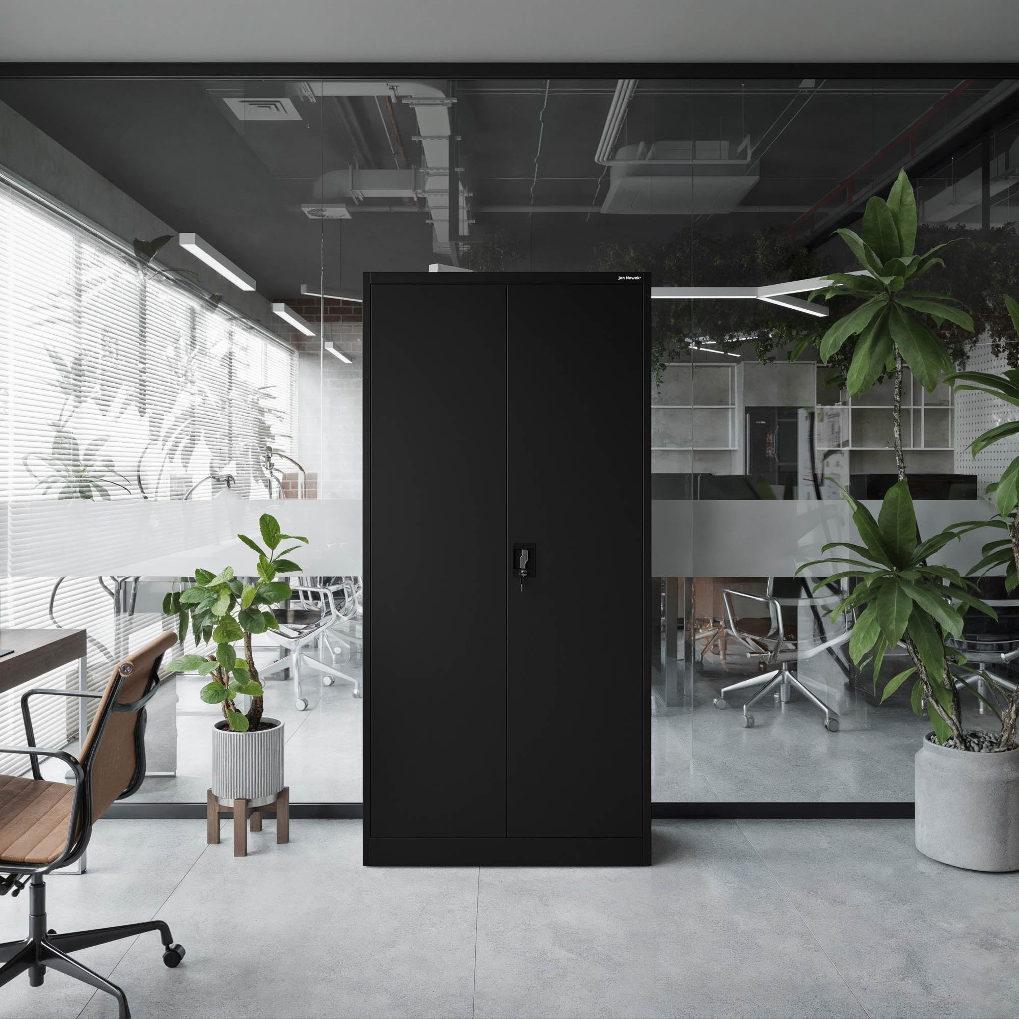 Kancelářská kovová skříň na dokumenty JAN, 900 x 1850 x 400 mm, černá