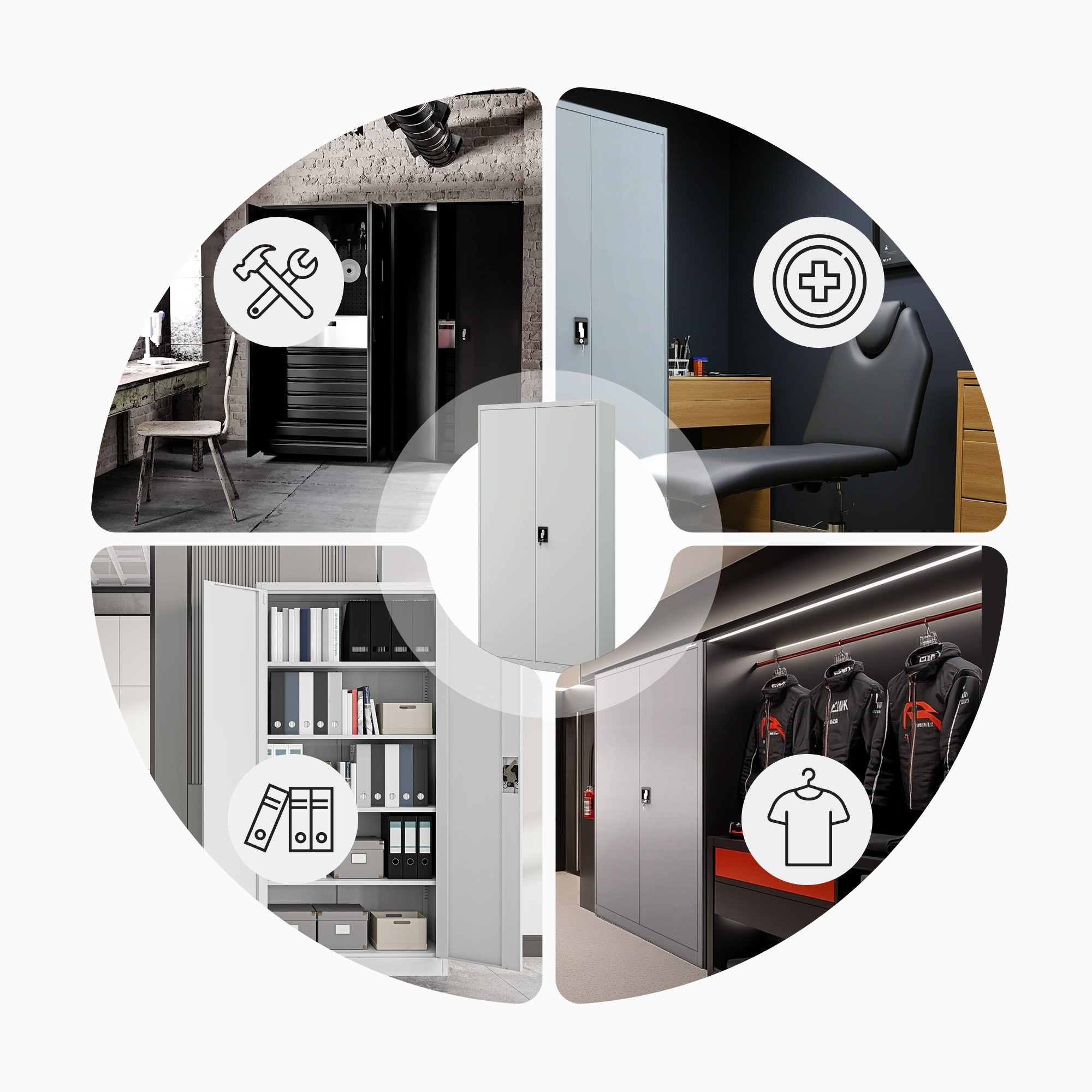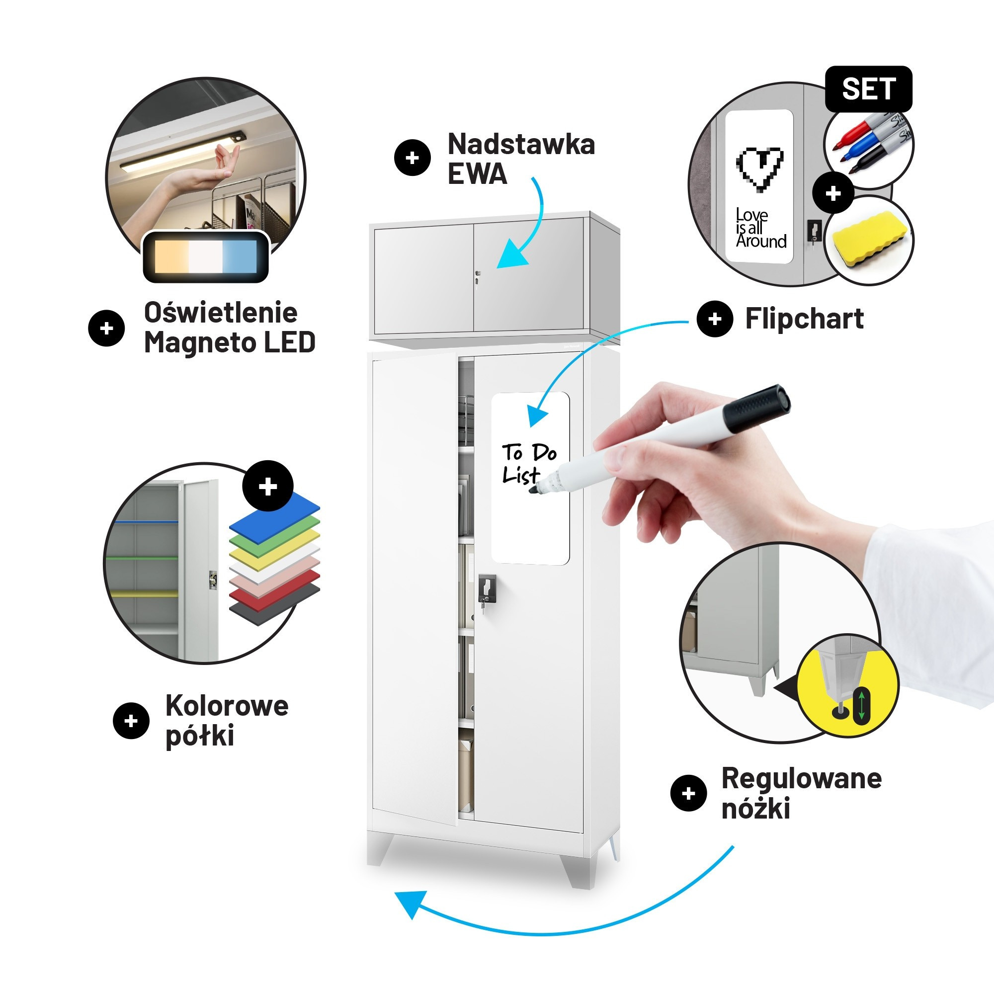 #html-body [data-pb-style=DIWYWJY]{margin-bottom:30px}#html-body [data-pb-style=DIWYWJY],#html-body [data-pb-style=RG8JOLY]{justify-content:flex-start;display:flex;flex-direction:column;background-position:left top;background-size:cover;background-repeat:no-repeat;background-attachment:scroll}#html-body [data-pb-style=QP91OL1]{border-style:none}#html-body [data-pb-style=FWVW3W0],#html-body [data-pb-style=V09R5H7]{max-width:100%;height:auto}@media only screen and (max-width: 768px) { #html-body [data-pb-style=QP91OL1]{border-style:none} } Kancelářská skříň JAN – šedá Skříň – šedá, ocelová, univerzální, na spisy, lékařská, do dílny Kovová uzamykatelná skříň JAN se vyznačuje velkou všestranností použití. Nejenže se dokonale hodí jako kancelářský nábytek, ale může také sloužit k vybavení interiérů s lékařským nebo průmyslovým charakterem. Nejčastěji využívaná jako: kancelářská skříň, lékařská skříň, skříň na nářadí. Naši zákazníci jsou nejčastěji firmy, úřady a školy, ale stále častěji objednávají ocelovou skříň na dokumenty i soukromé osoby, které využívají její minimalistický design k vybavení interiérů v industriálním stylu. Skříň na dokumenty JAN – Hlavní vlastnosti produktu Skříň na dokumenty JAN v šedé barvě je kombinací funkčnosti a odolnosti. Nejenže vydrží nejtěžší podmínky, ale také snadno přizpůsobíte její vnitřek svým požadavkům díky nastavitelným policím. Naše kovová skříň byla vybavena otvory na zadní a boční stěně, které umožňují její připevnění ke stěně. Zvýší to bezpečnost každodenního používání. Otvor v horní části skříně umožňuje připevnit nástavec. Zadní část naší kovové skříně se skládá ze dvou částí. Velká kapacita Chcete uložit 50 šanonů? Žádný problém! Bezpečnost Dvoukřídlé dveře se zámkem zajištěným ve 3 bodech (2 klíče v sadě). Odolnost Ocel o tloušťce 0,6 mm, práškově lakovaná, odolná proti mechanickému poškození. Funkčnost 4 přestavitelné police, každá s nosností do 50 kg, s nastavením každých 25 mm. Specifikace – kovová skříň JAN výška 185 cm šířka 90 cm hloubka 40 cm hmotnost 40 kg barva šedá RAL 7035 Proč stojí za to? Záruka kvality Pevné provedení a nejlepší materiály. To je hodnota, kterou je těžké najít jinde na trhu! Osvědčení PZH Využijte kovovou skříň JAN ve své podnikatelské činnosti! Splňuje platné normy týkající se bezpečnosti. Skříň na dokumenty JAN je plně připravena na předpisy související s GDPR 2018. Naše kovová kancelářská skříň vyžaduje vlastní montáž. Kolekce Jsme jedním z největších dodavatelů ocelových skříní v Evropě. Využíváním služeb renomovaného dodavatele si zajišťujete vyšší kvalitu produktů a zákaznického servisu.