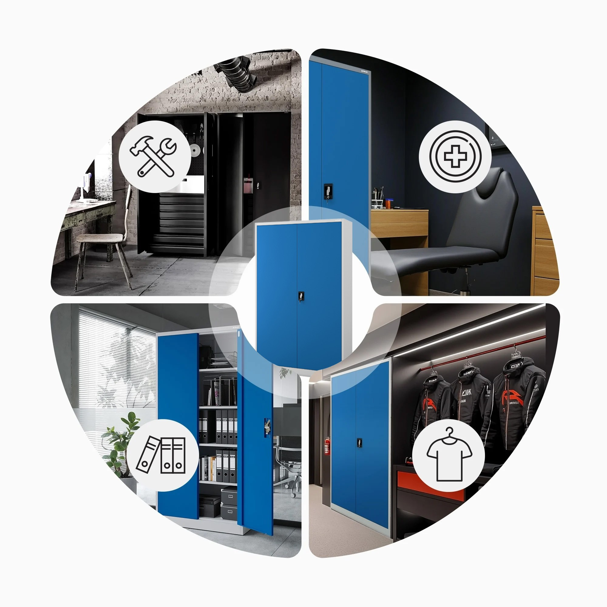 Kancelářská kovová skříň na dokumenty šedo-modrá JAN II, 1150 x 1850 x 400 mm