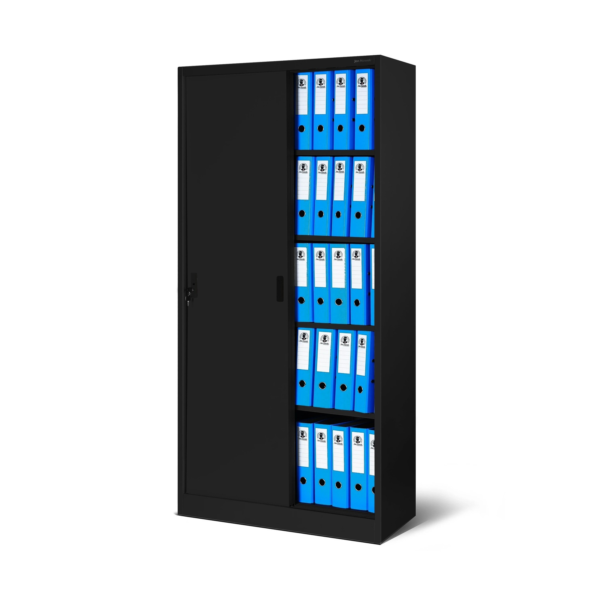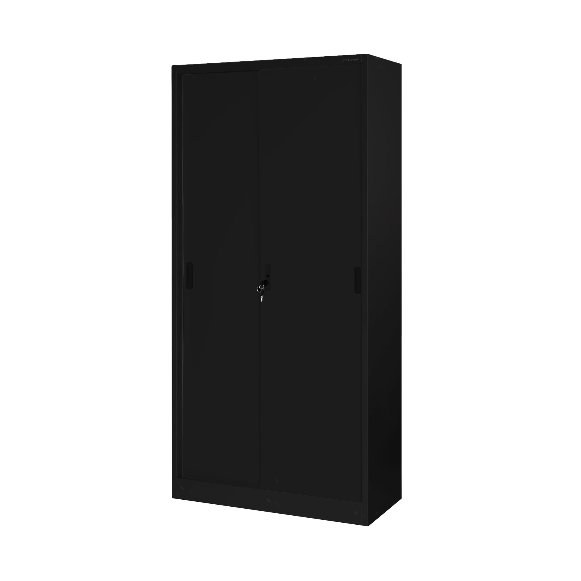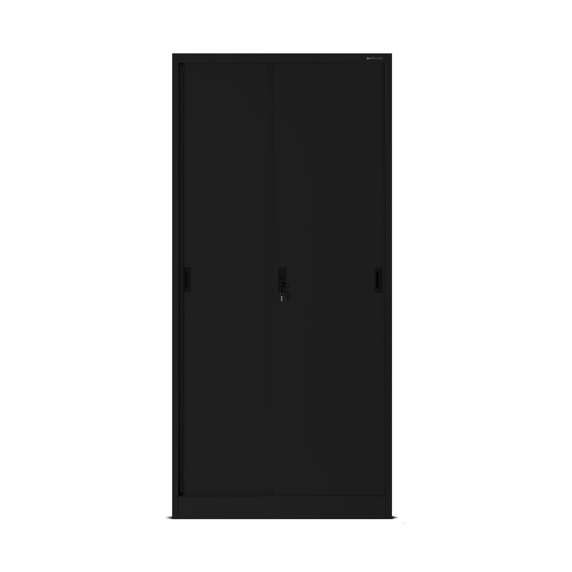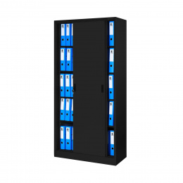 Kovová kancelářská skříň s posuvnými dveřmi KUBA, 900 x 1850 x 400 mm, černá
