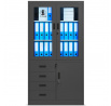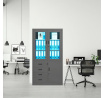 Kancelářská prosklená kovová skříň na dokumenty se zásuvkami WIOLA, 900 x 1850 x 400 mm, antracitová