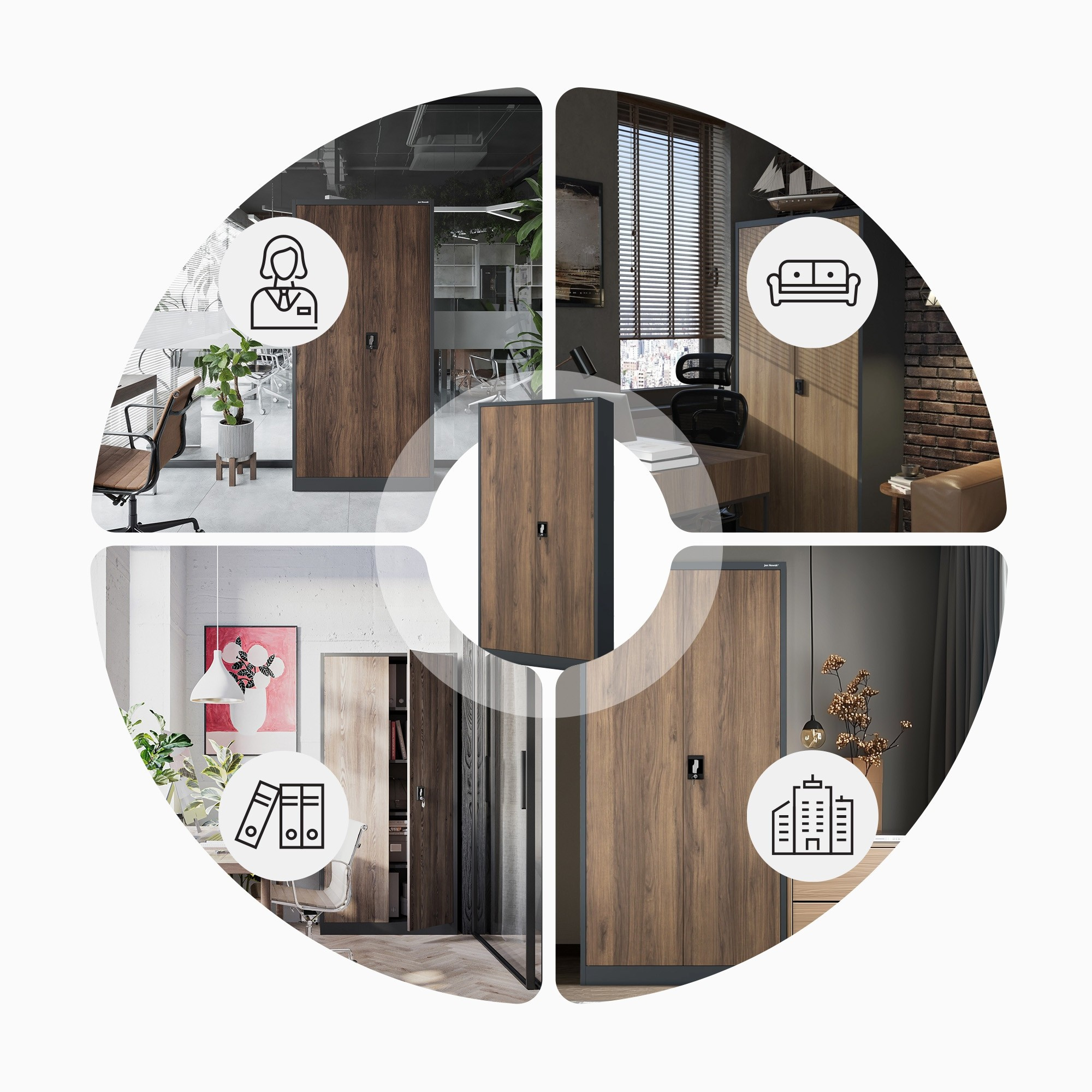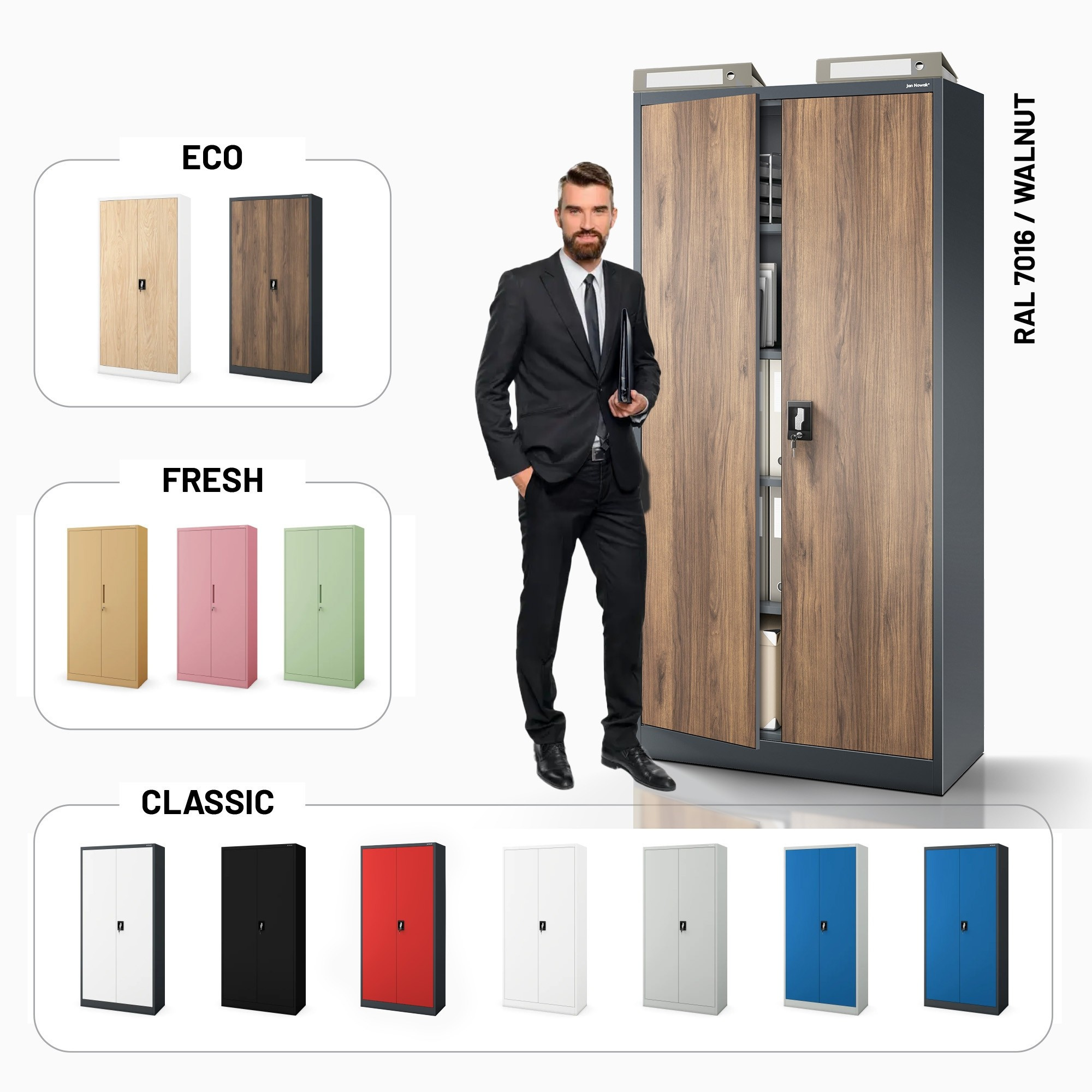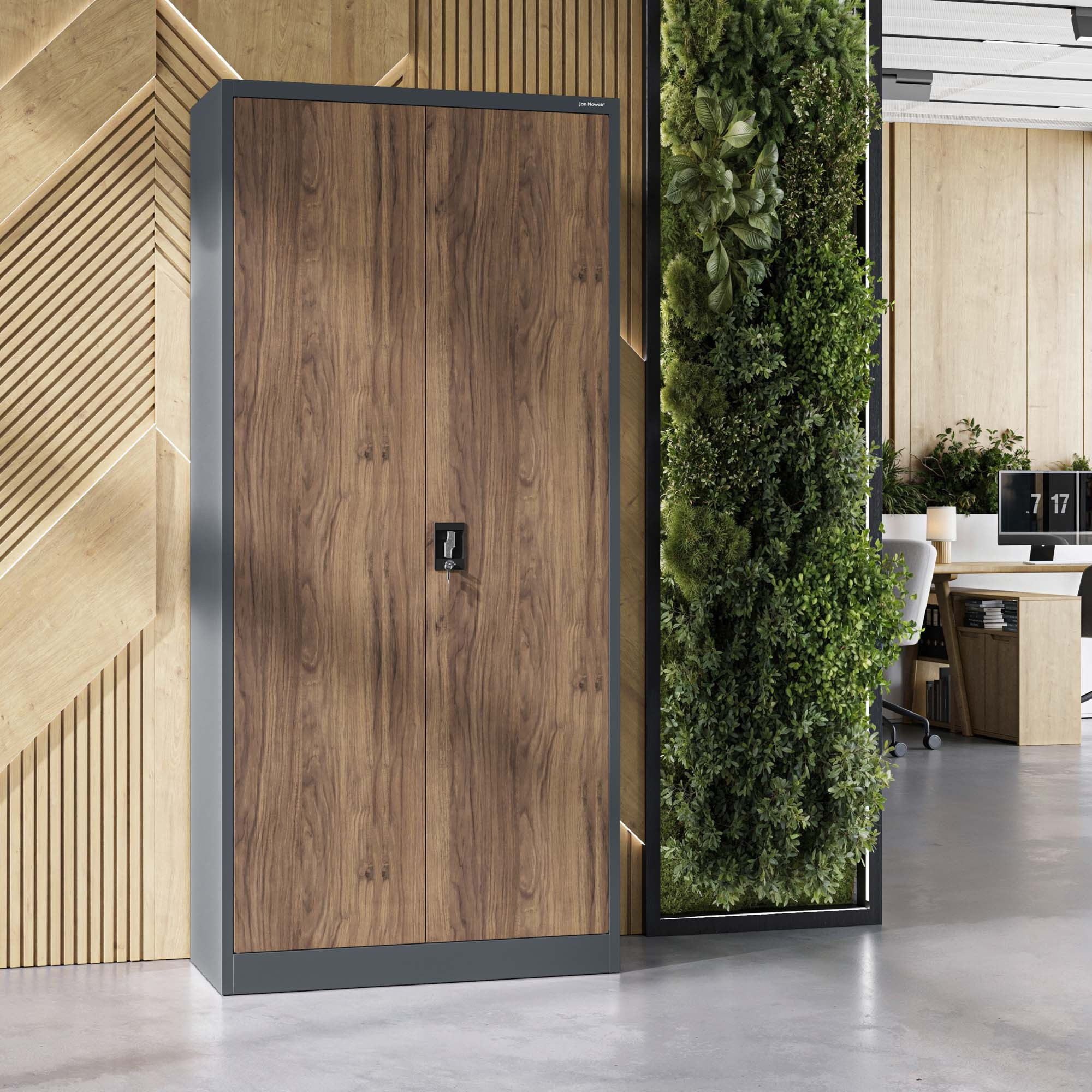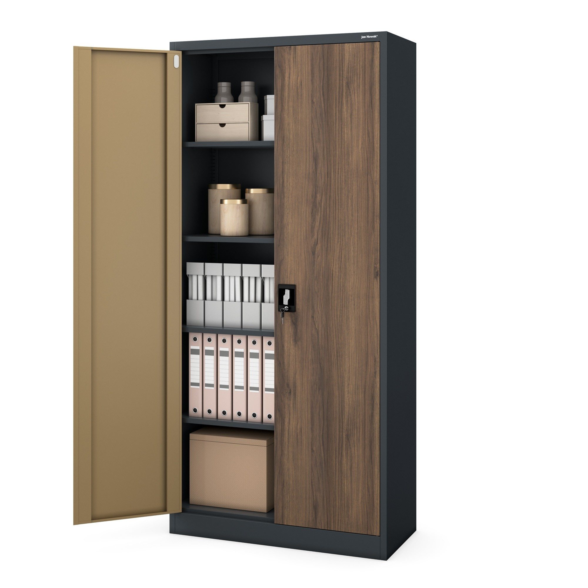 Kancelářská kovová skříň na dokumenty antracitová/ořech: Eco Design JAN H, 900 x 1950 x 400 mm
