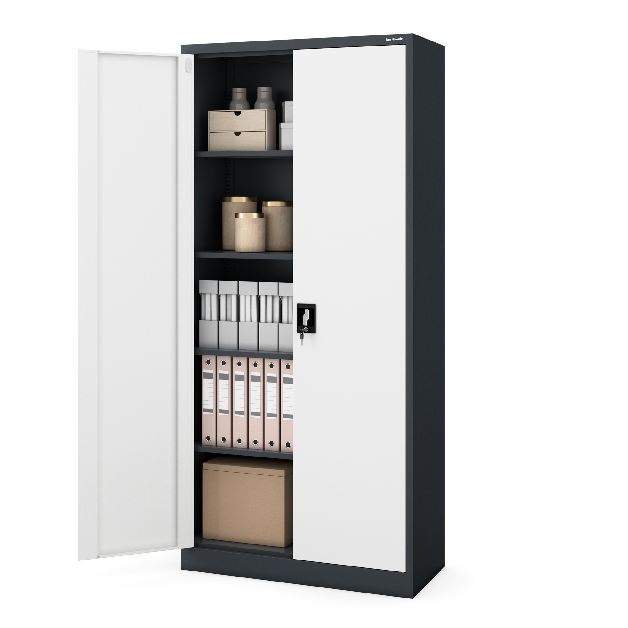 Kancelářská kovová skříň na dokumenty antracitovo-bílá: JAN H, 900 x 1950 x 400 mm