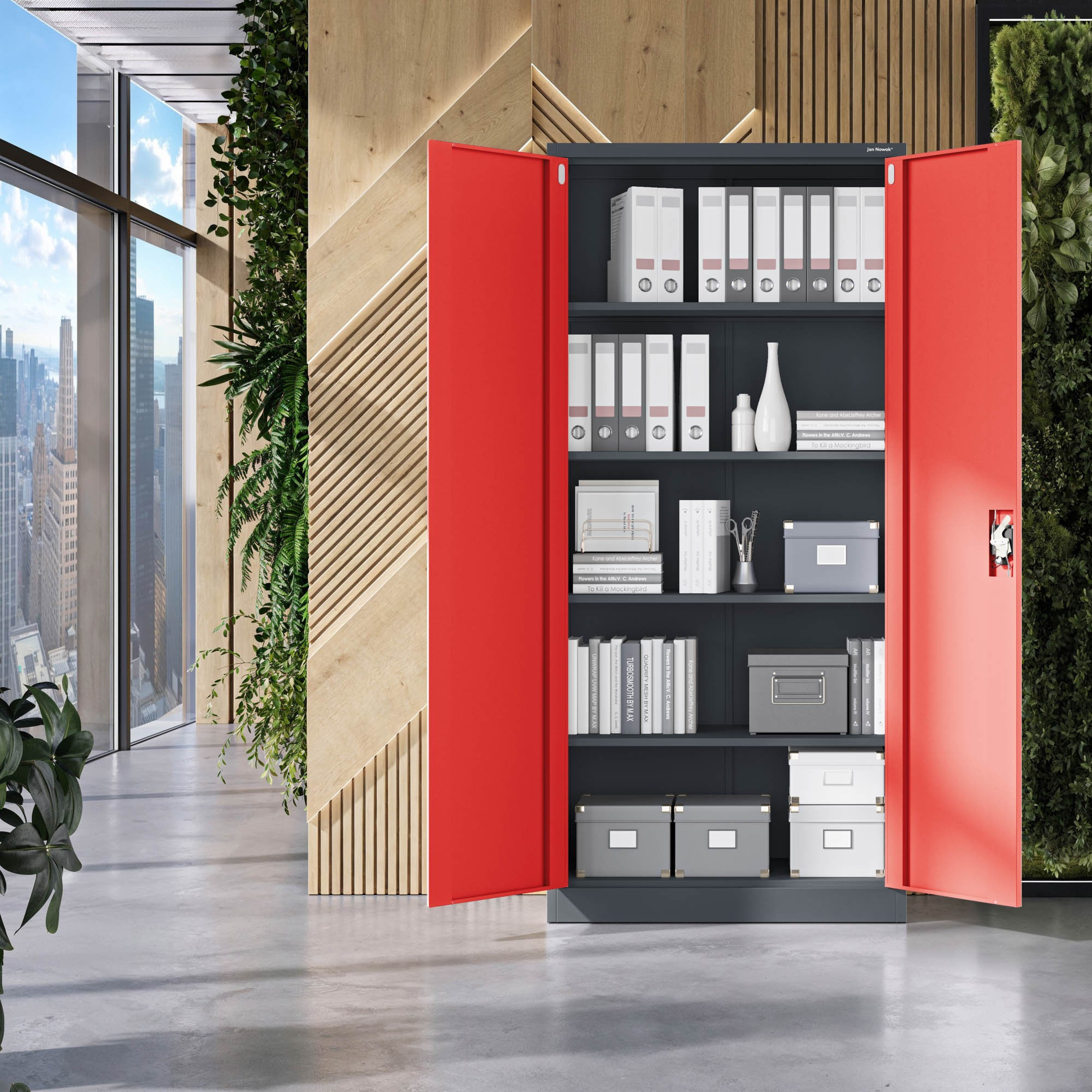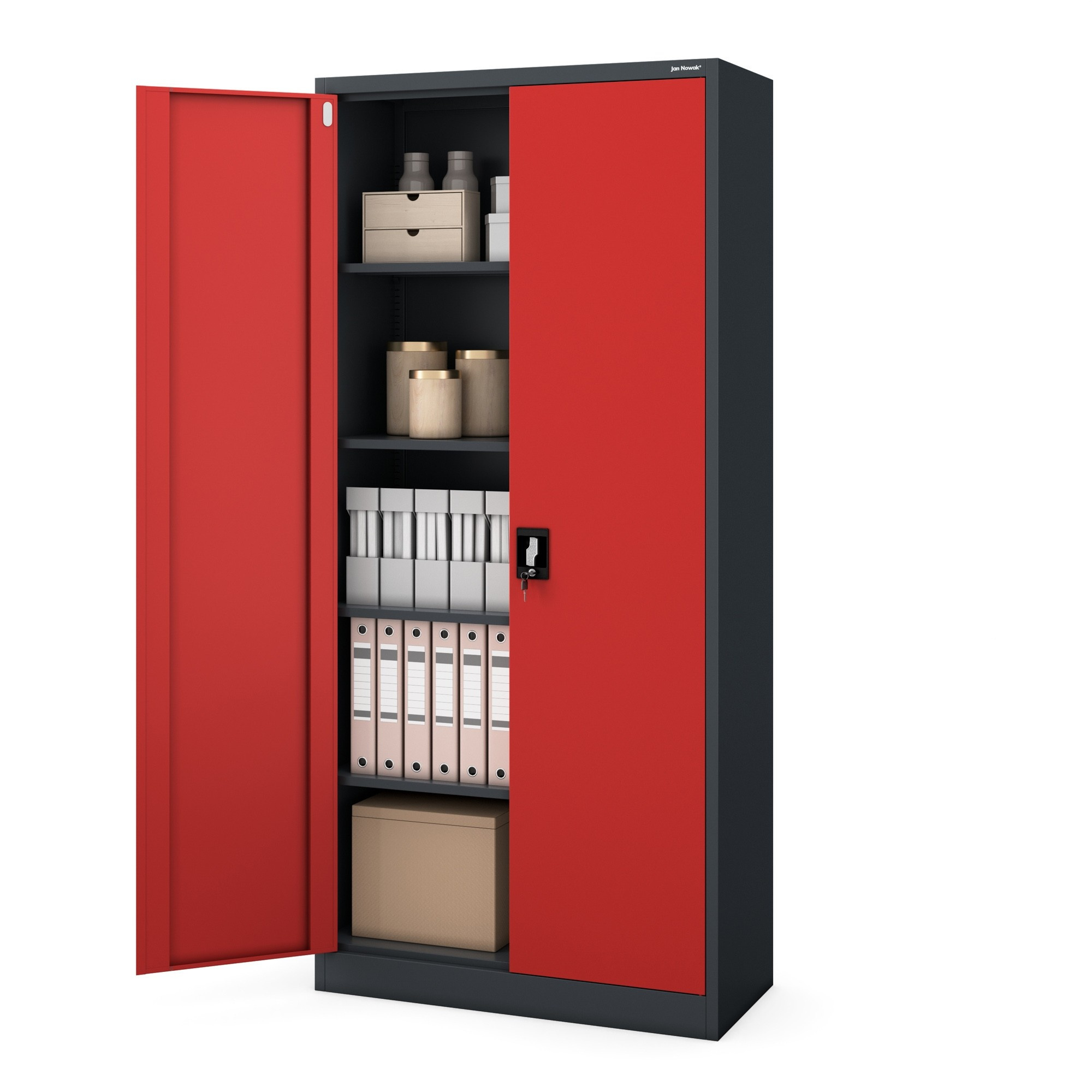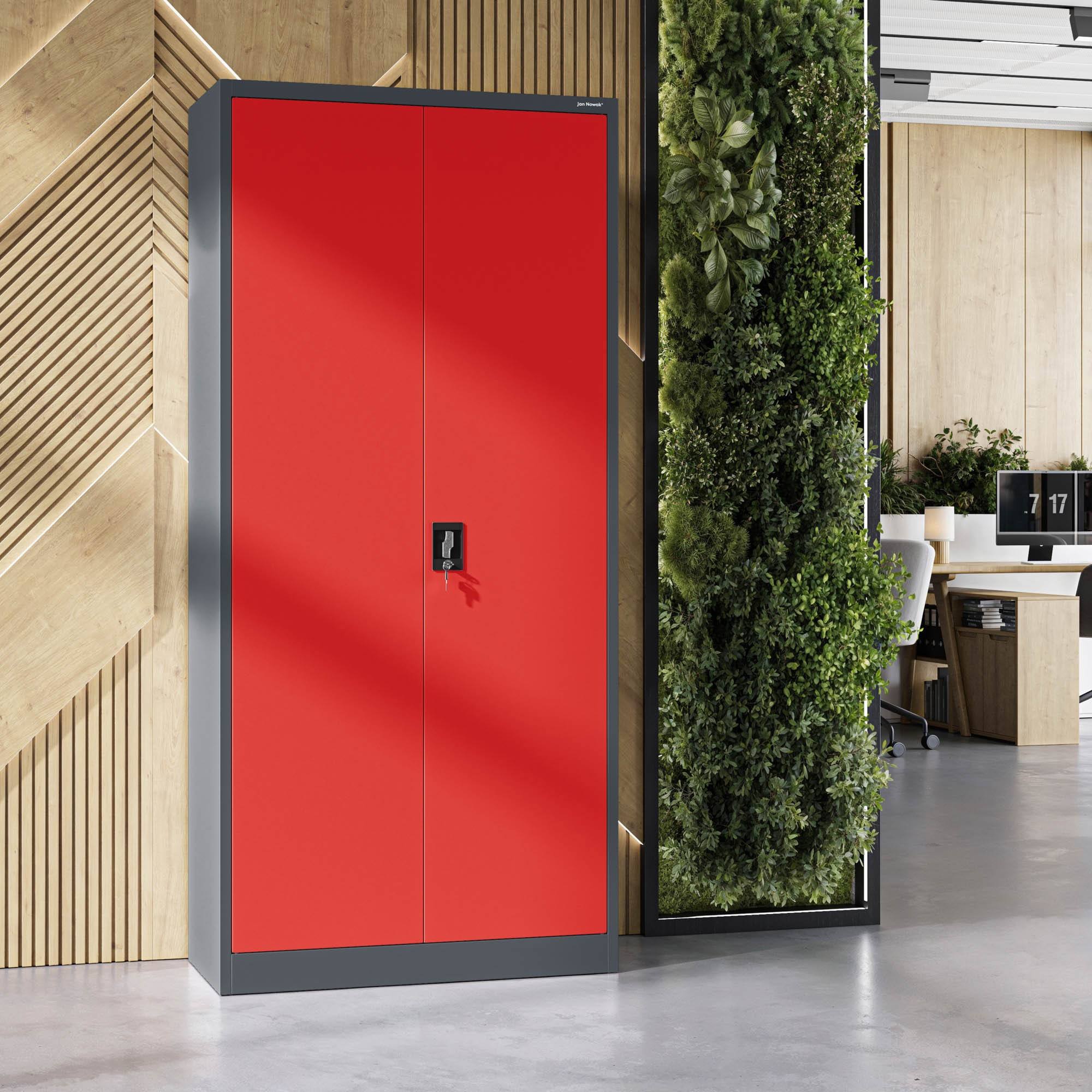 Kancelářská kovová skříň na dokumenty antracitovo-červená: JAN H, 900 x 1950 x 400 mm
