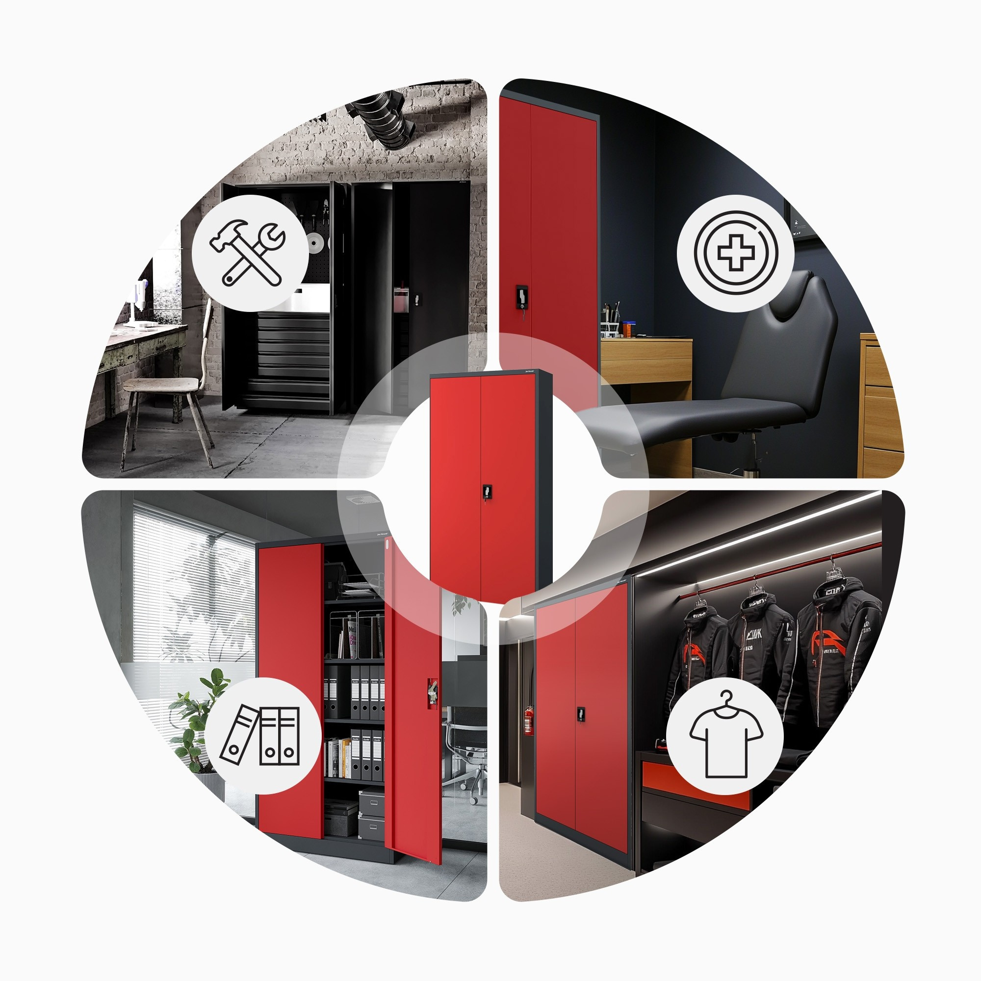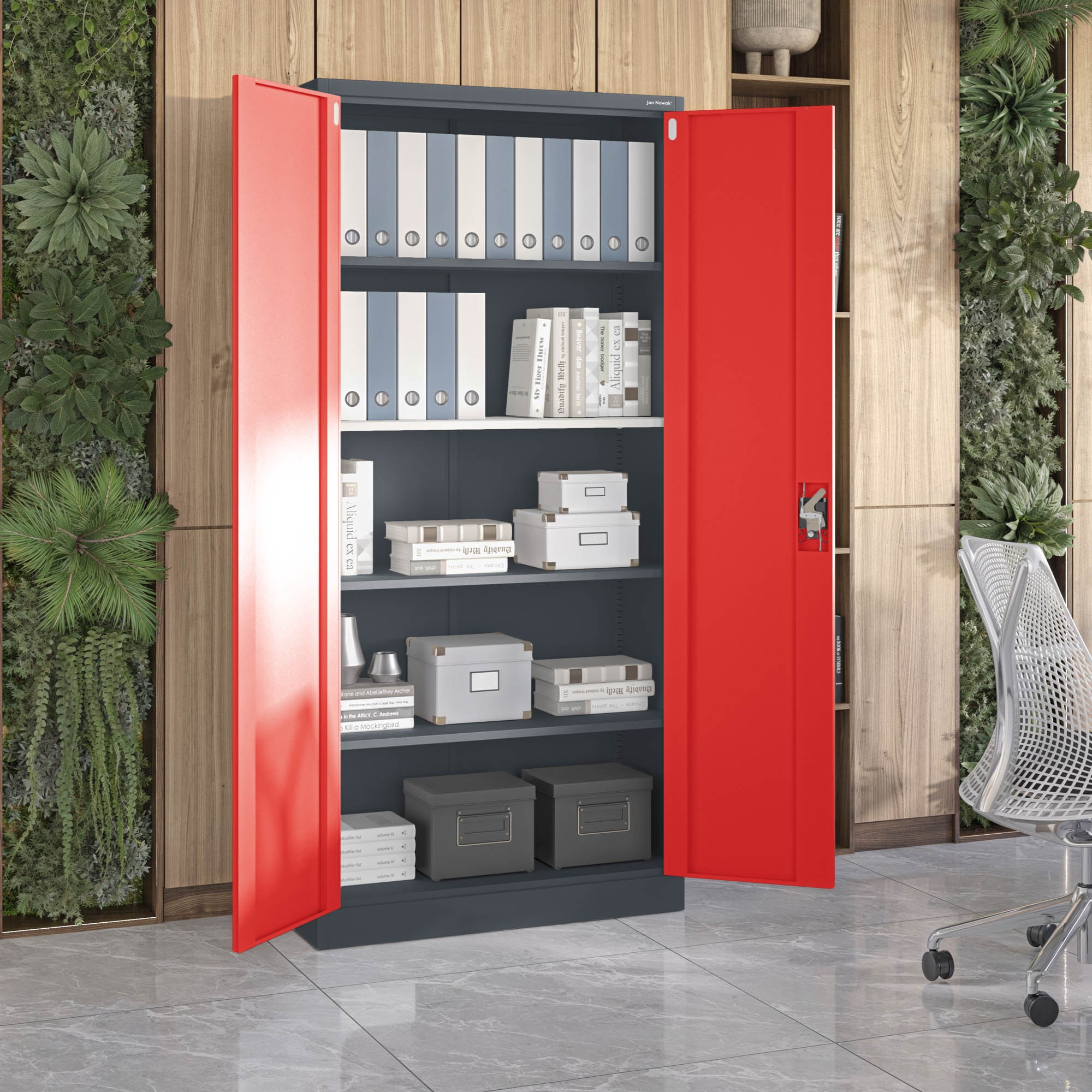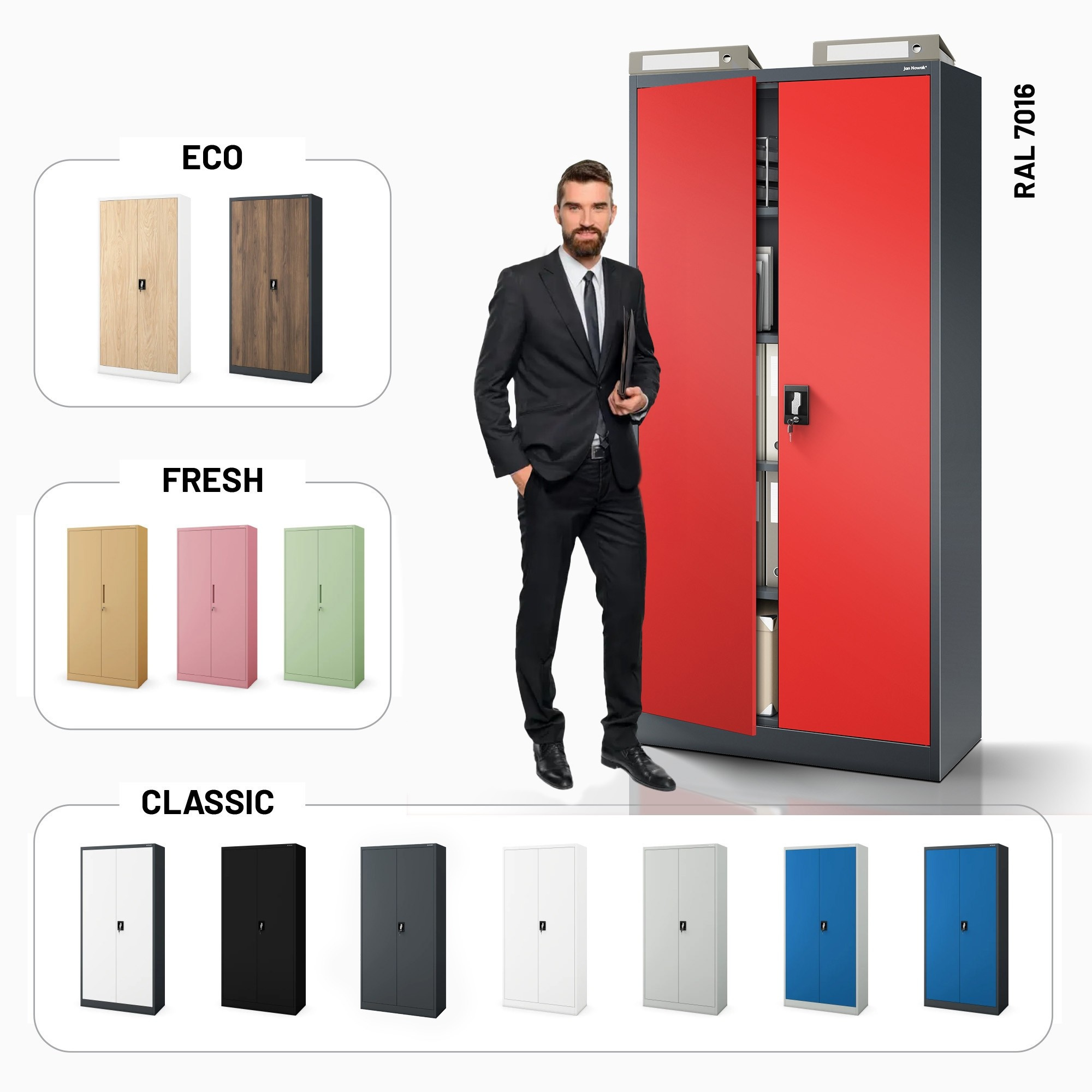 Kancelářská kovová skříň na dokumenty antracitovo-červená: JAN H, 900 x 1950 x 400 mm