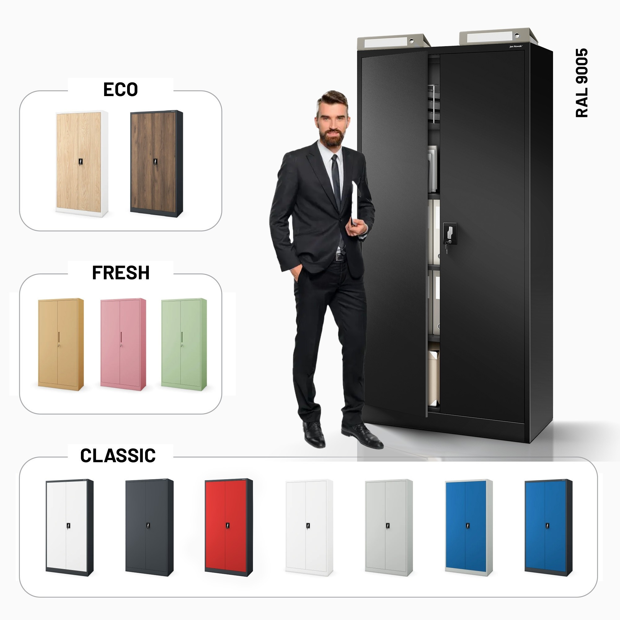 Kancelářská kovová skříň na dokumenty černá: JAN H, 900 x 1950 x 400 mm