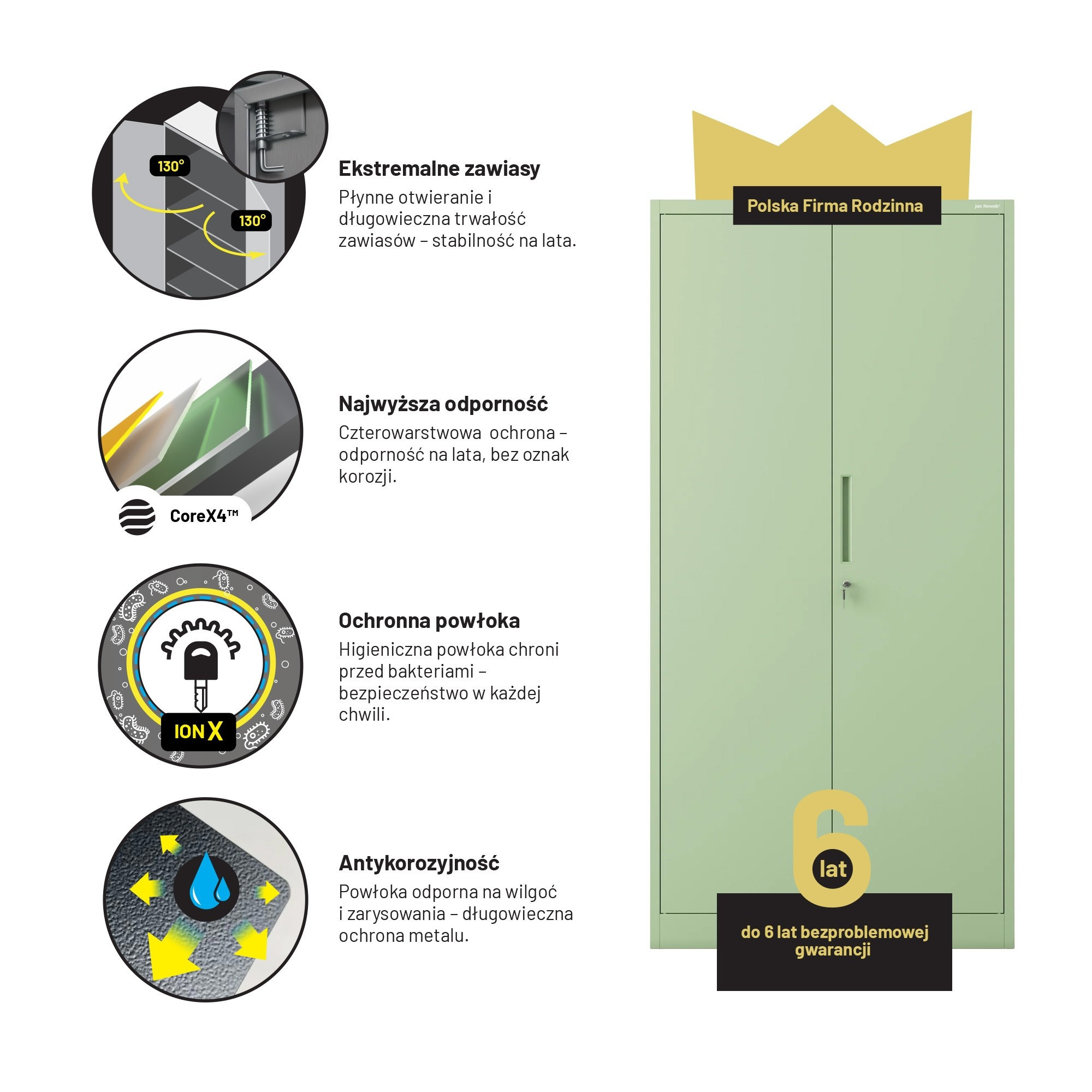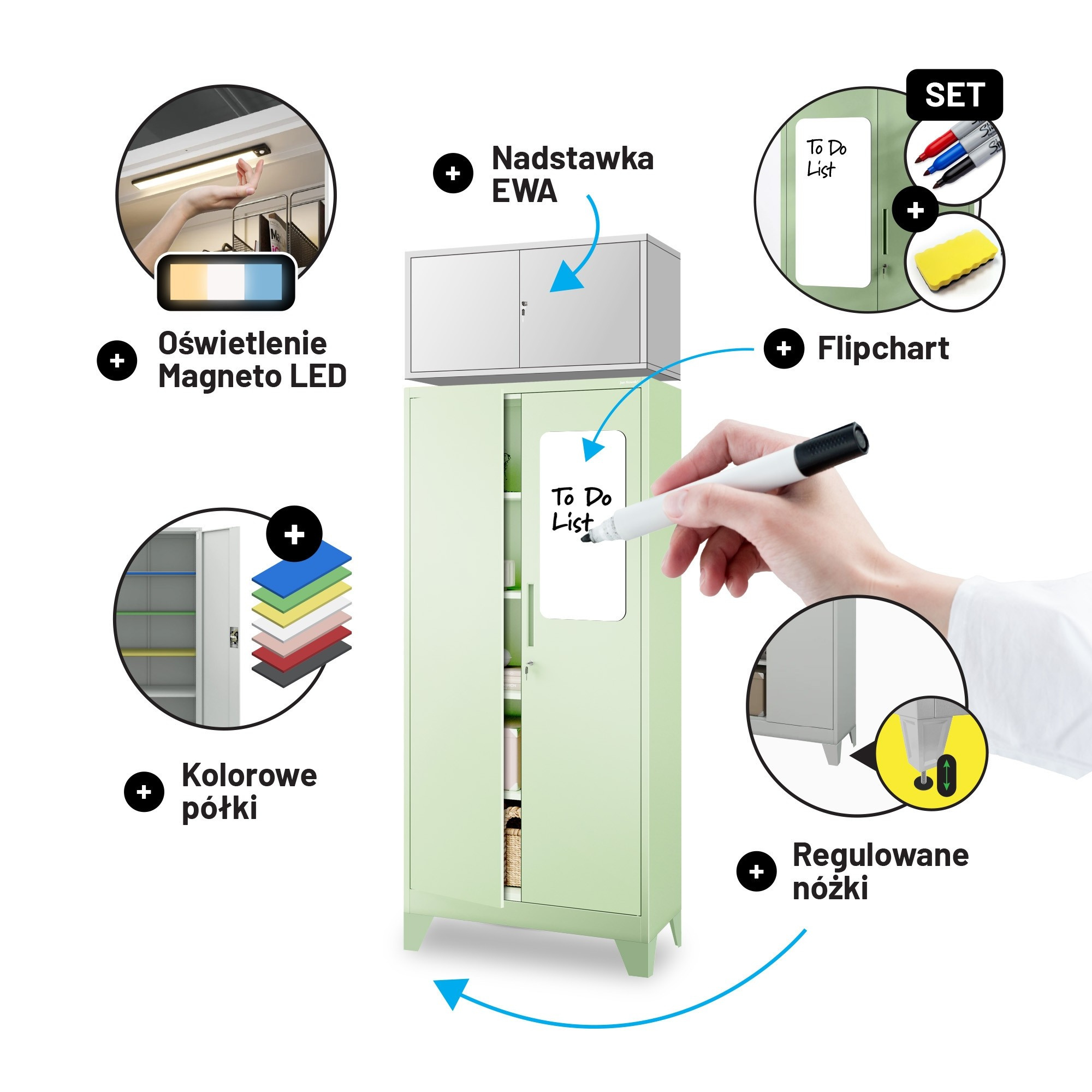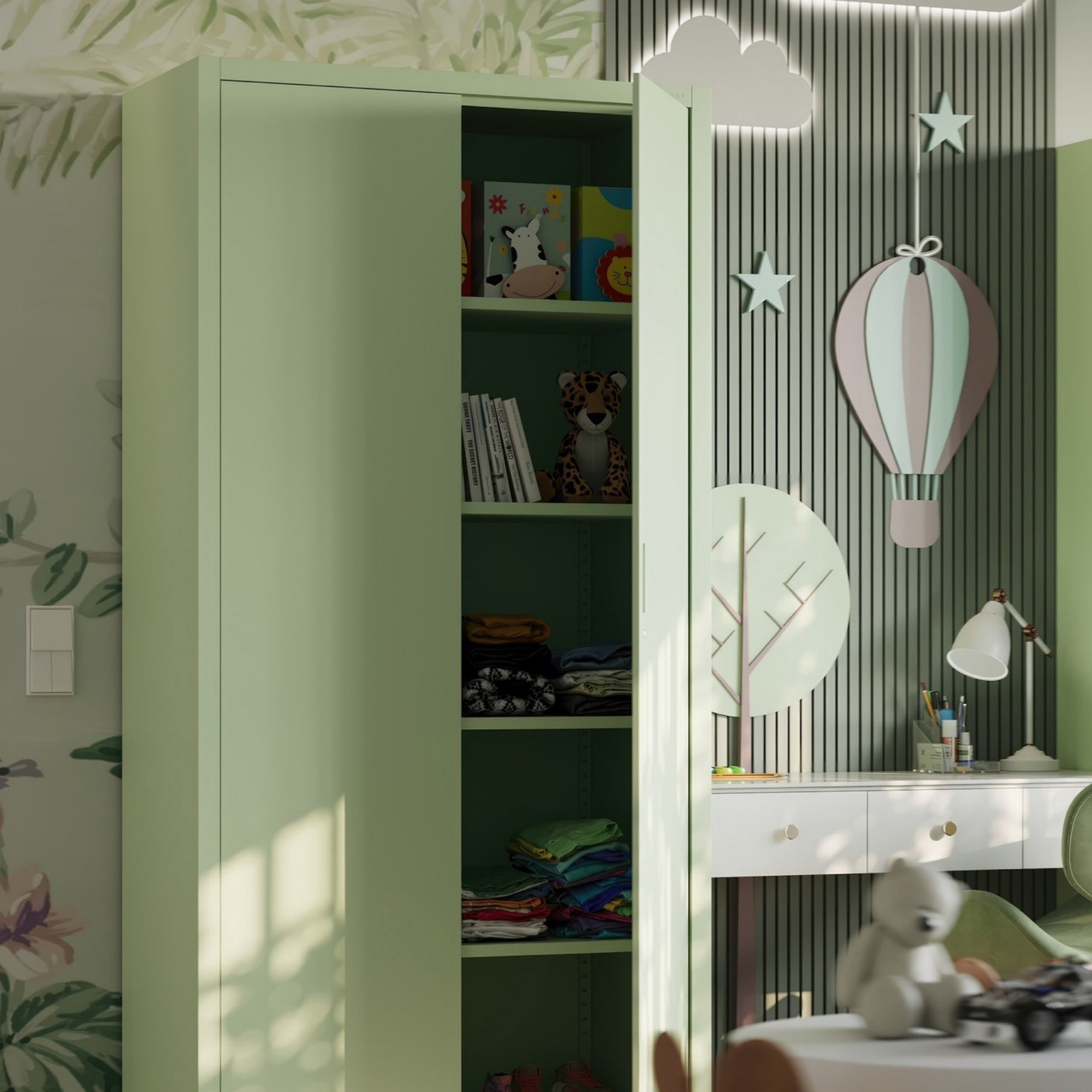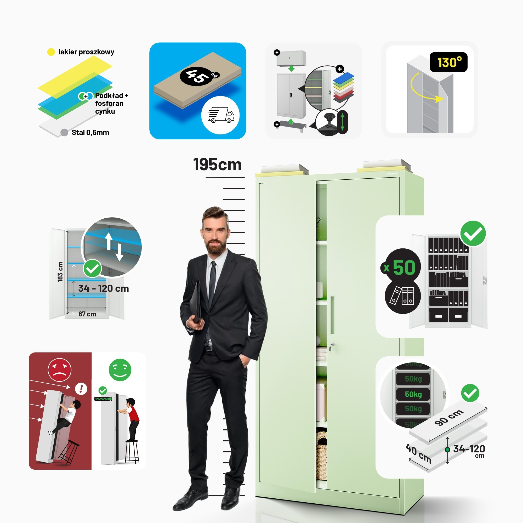 Kancelářská kovová skříň na dokumenty pastelově zelená: Fresh Style JAN H 900 x 1950 x 400 mm