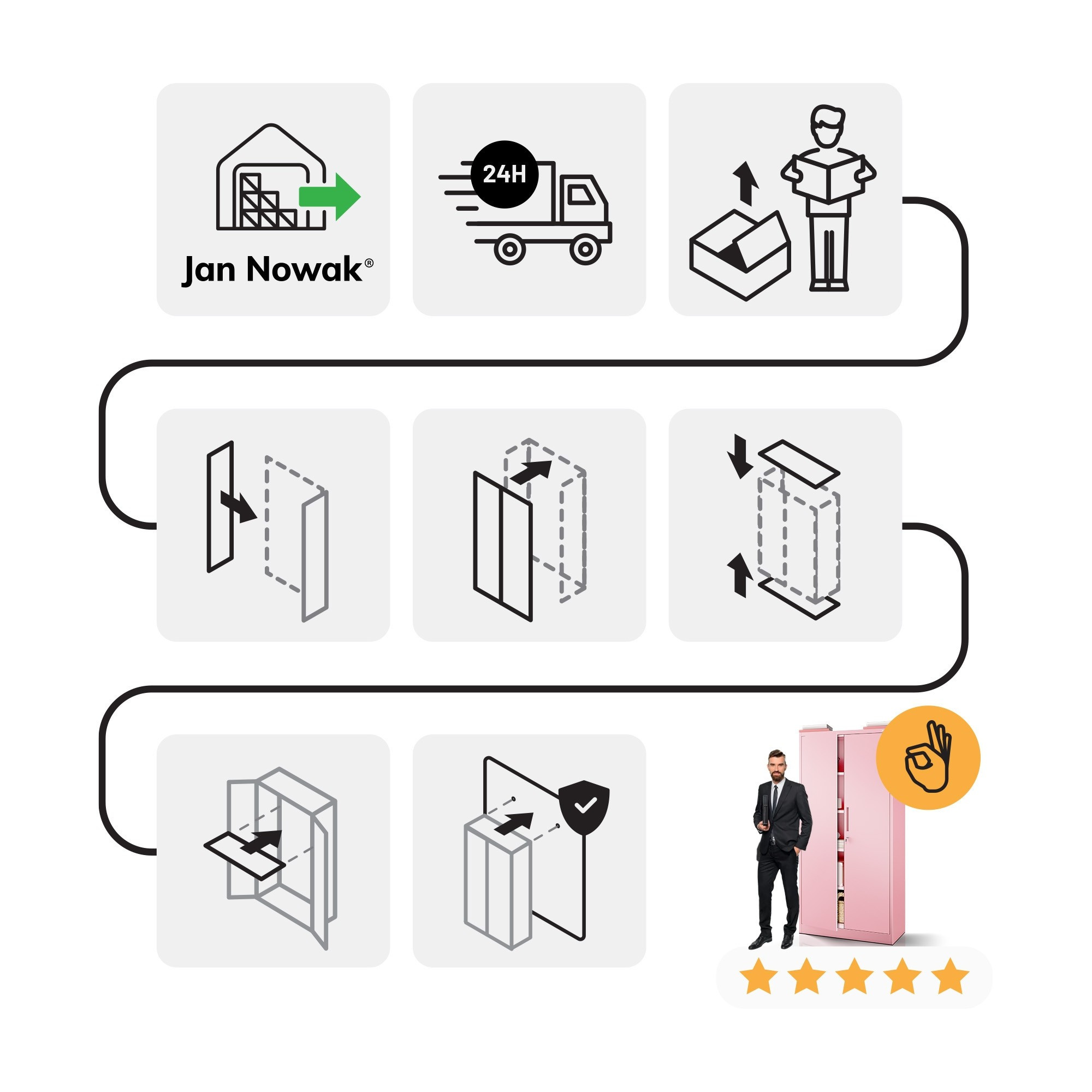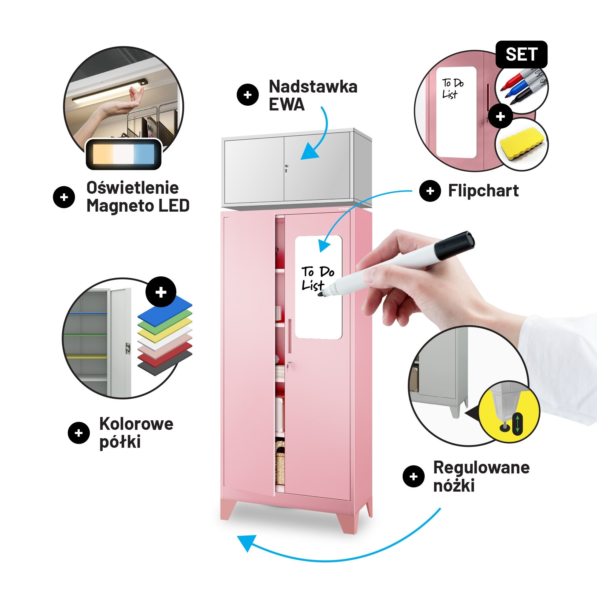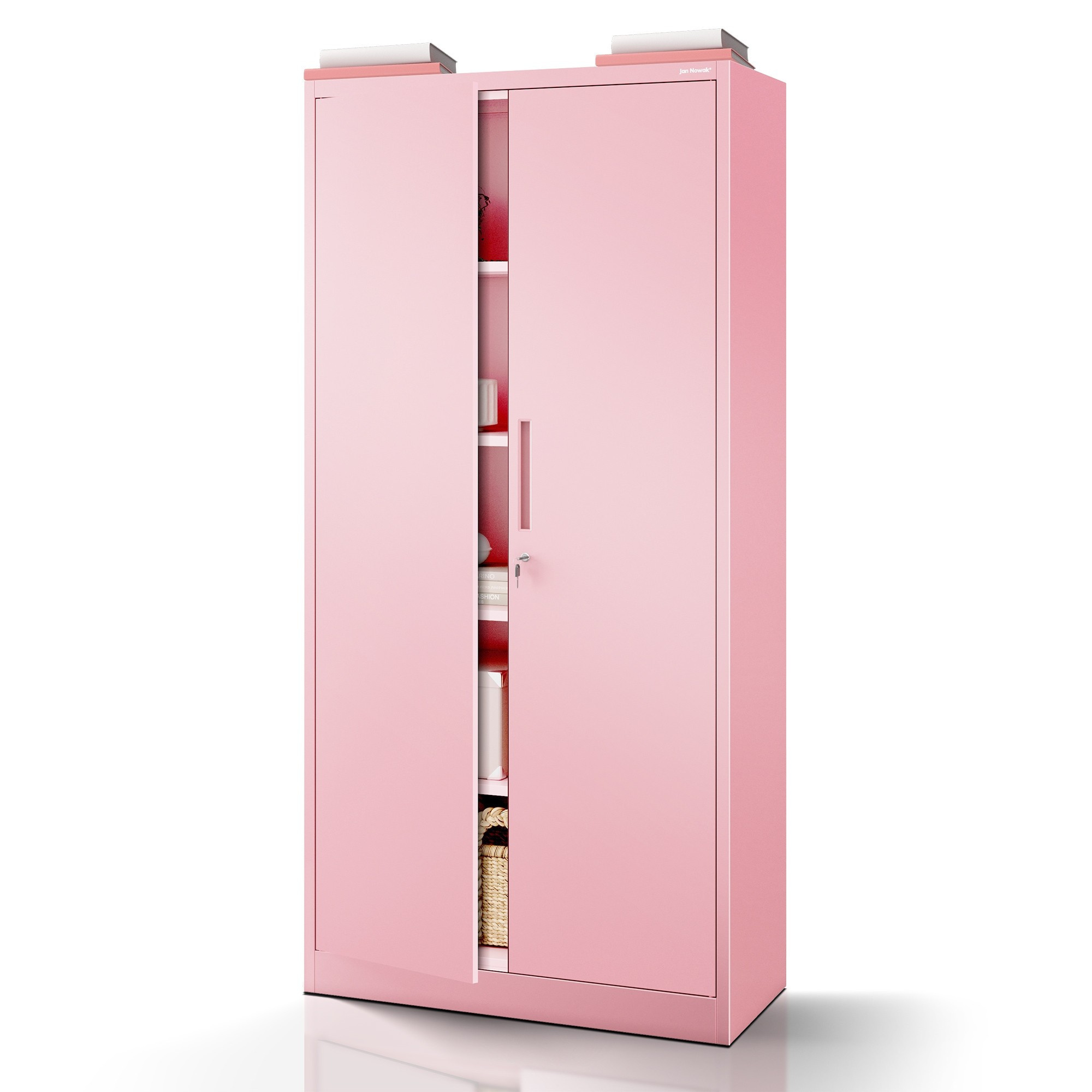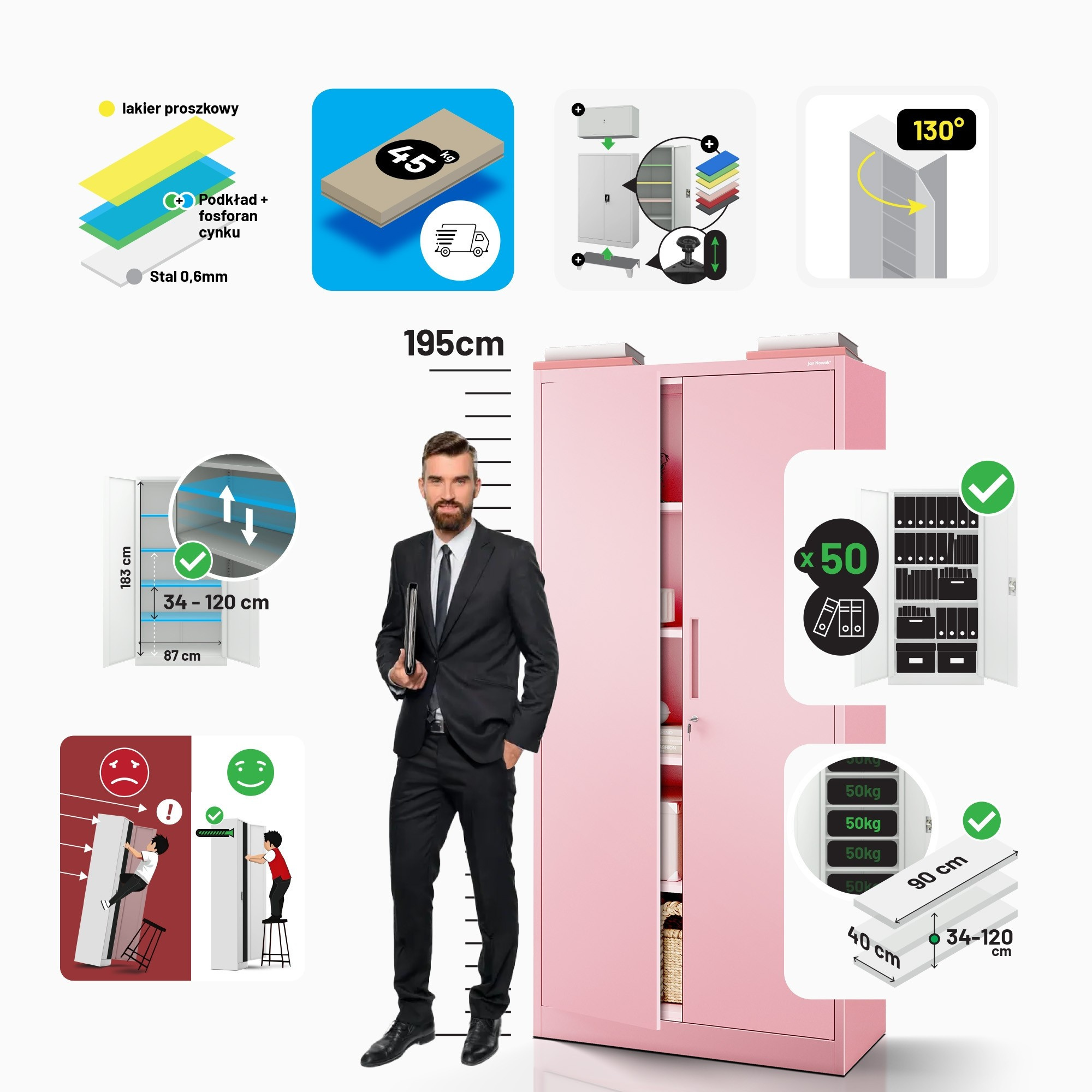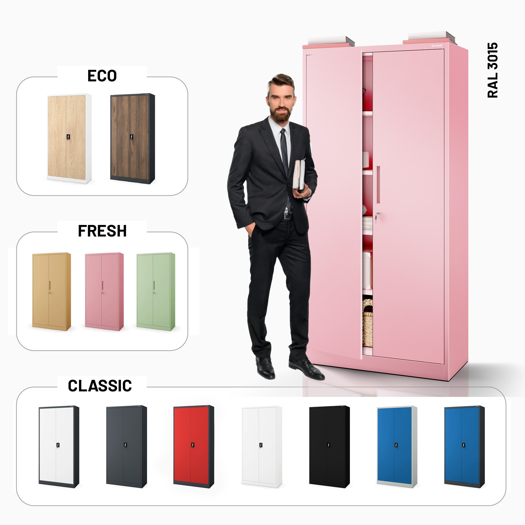 Kancelářská kovová skříň na dokumenty pudrově růžová: Fresh Style JAN H, 900 x 1950 x 400 mm