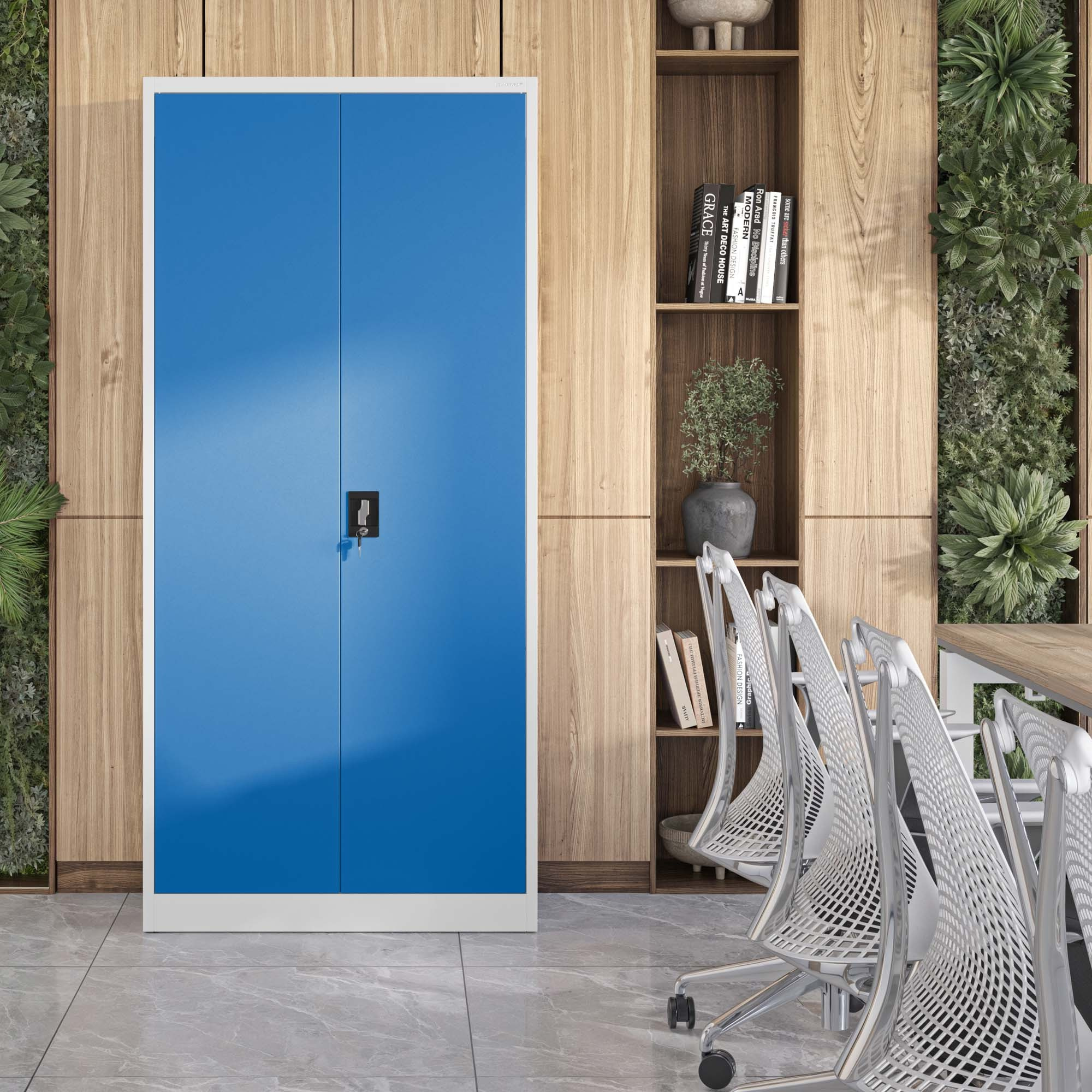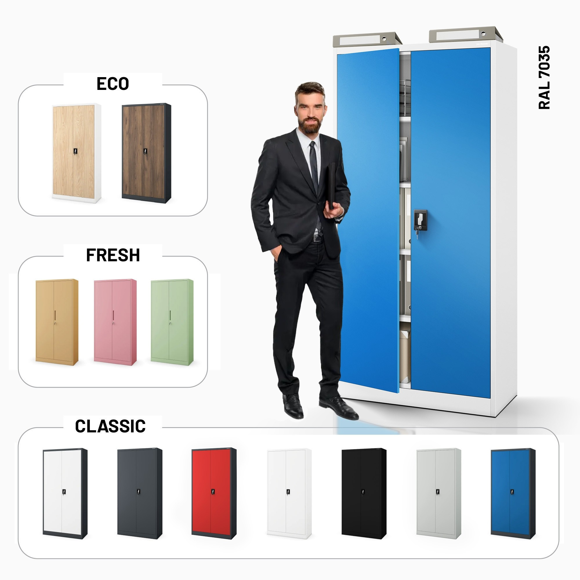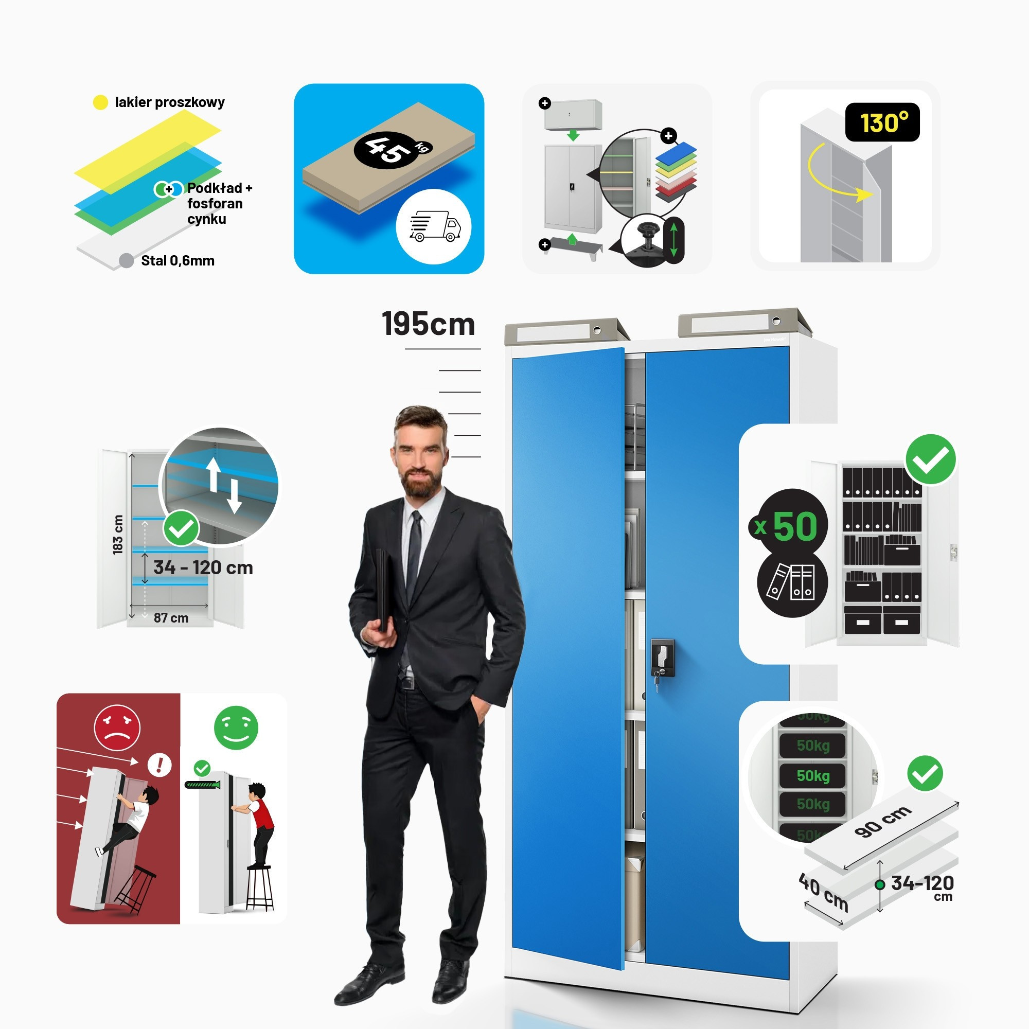 Kancelářská kovová skříň na dokumenty šedo-modrá: JAN H, 900 x 1950 x 400 mm