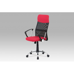 Kancelářská židle, červená látka, černá MESH, houpací mech, kříž kovový