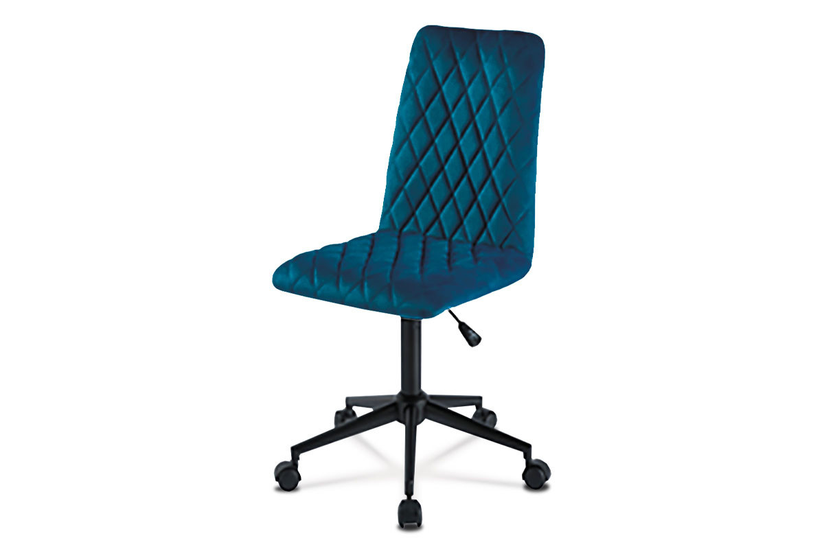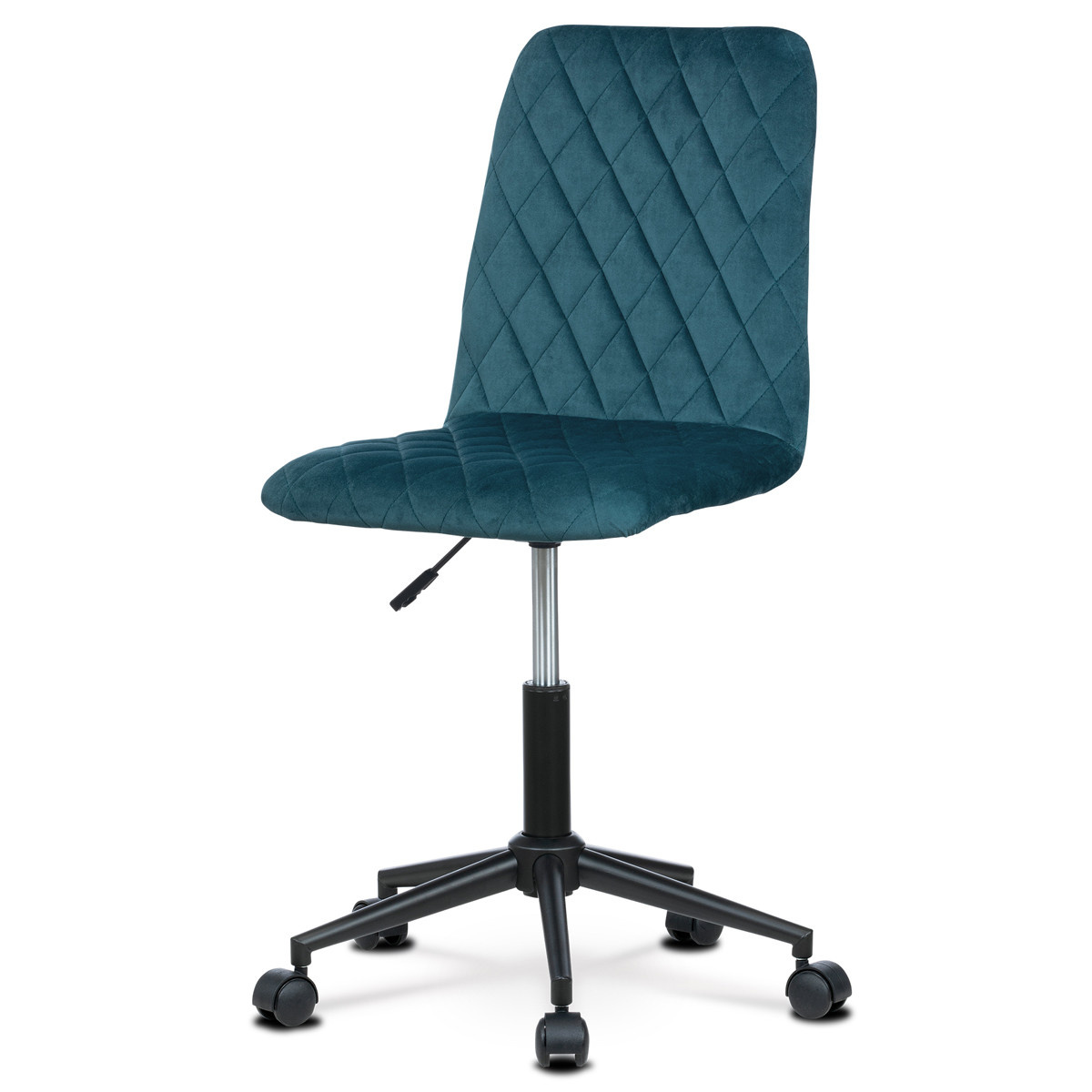 Dětská židle v minimalistickém designu potažená petrolejově modrou sametovou látkou s výrazným kosočtvercovým prošíváním sedáku i vysokého opěráku. Výplň je v kvalitní PU pěny, která zaručuje příjemné dlouhodobé sezení. Je výškově nastavitelná a otočná. Správnou stabilitu zajišťuje pětiramenný kovový kříž s nástřikem černé práškové barvy a s kolečky určenými na koberce. Nosnost je 70 kg. Použité materiály i vzhled vytvářejí z této židle příjemnou a oblíbenou součást dětského pokoje.