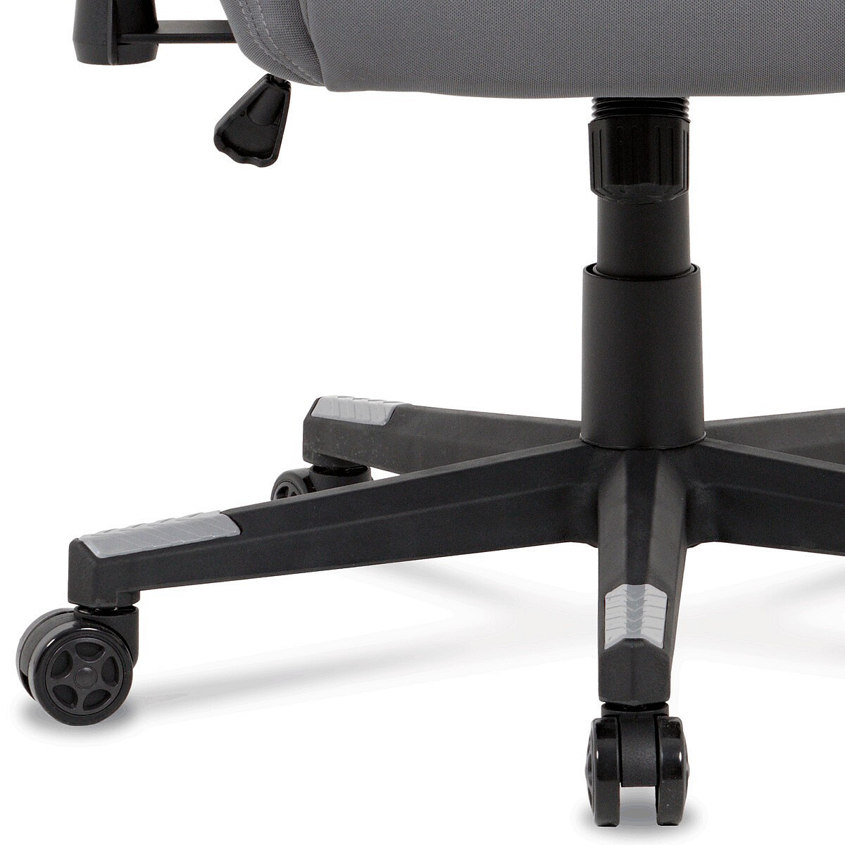 Kancelářská židle KA-F05 GREY je vybavena houpacím mechanismem, který umožňuje plynulé polohování opěradla až do úhlu 90°, což přispívá k lepšímu pohodlí při delším sezení. Čalounění z šedé látky nabízí příjemný povrch s kvalitním zpracováním, které je navrženo pro dlouhou životnost a snadnou údržbu. Plastový kříž zajišťuje stabilitu a lehkost celé židle, zatímco výškově nastavitelné jednosměrné područky umožňují individuální přizpůsobení pracovní pozice. Ergonomický tvar sedáku a opěradla podporuje správné držení těla, což je vhodné zejména pro herní i kancelářské využití. Nosnost židle odpovídá standardním požadavkům a její konstrukce je optimalizována pro každodenní používání.
