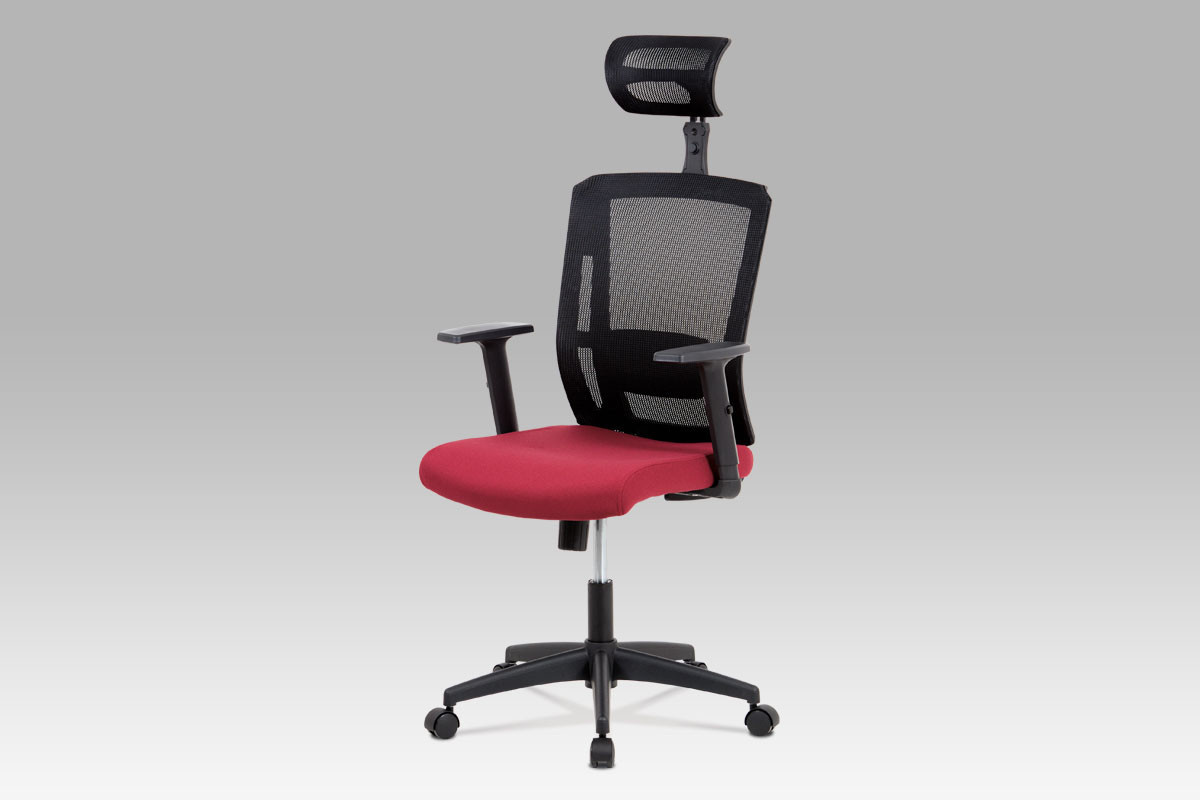 Kancelářská židle se síťovaným opěrákem v černé barvě a vínovým látkovým sedákem. Židle je výškově nastavitelná, vybavená houpacím mechanismem. Výškově nastavitelné plastové područky, síťovaná, výškově nastavitelná a polohovací opěrka hlavy a nastavitelná bederní opěrka. Plastový kříž s plastovými kolečky vhodnými na koberce.