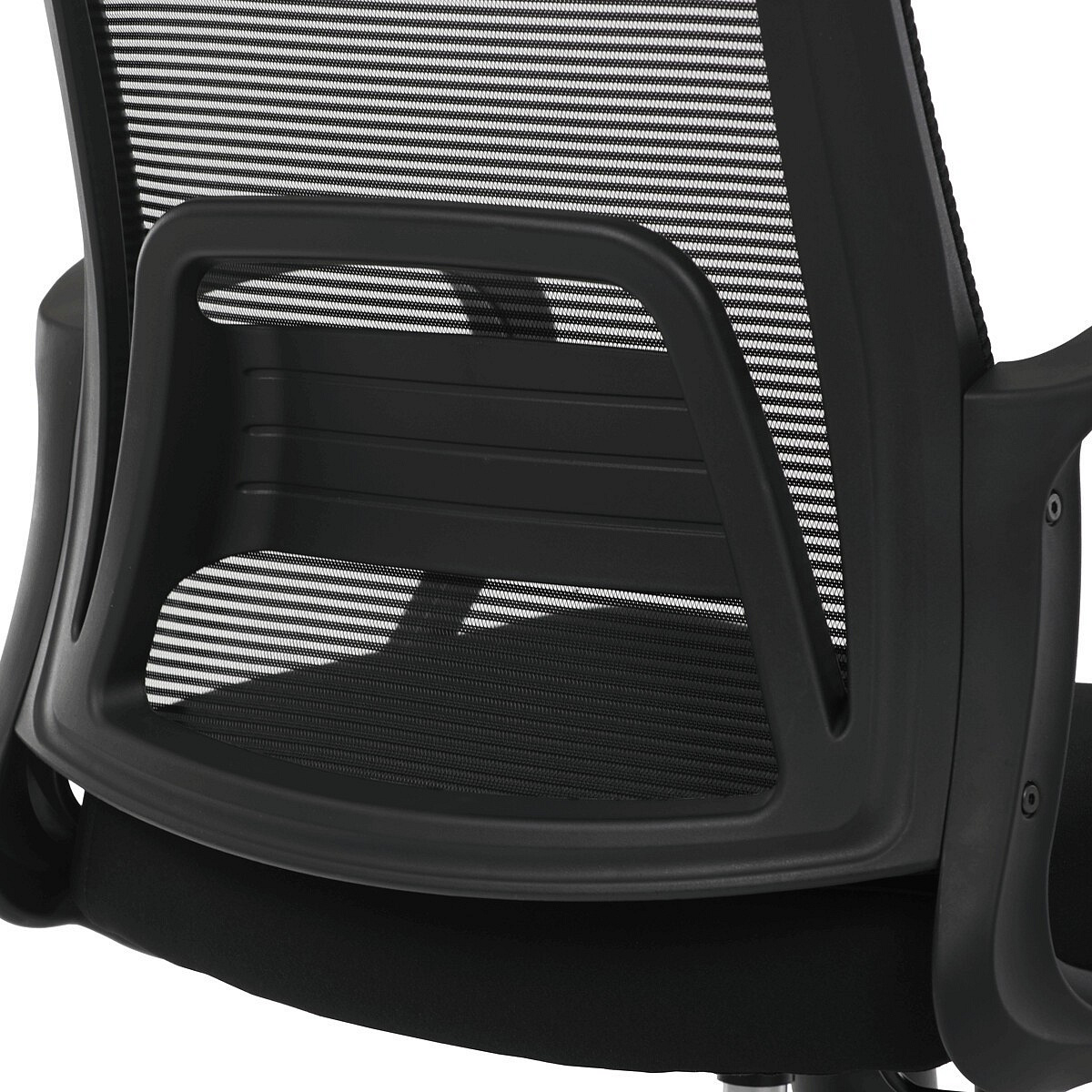 Kancelářská židle s černým síťovaným opěrákem nabízí prodyšné sezení, které podporuje cirkulaci vzduchu během dlouhých pracovních hodin. Pevná bederní opěrka zajišťuje správnou oporu spodní části zad, což přispívá k ergonomii a pohodlí uživatele. Sedák je čalouněný kvalitní látkou v černé barvě, která je příjemná na dotek a snadno se udržuje. Pevné plastové područky doplňují stabilní plastový kříž s kolečky určenými pro tvrdé povrchy, což umožňuje snadný pohyb bez poškození podlahy. Houpací mechanika umožňuje nastavení sklonu opěradla pro individuální komfort, nosnost židle je standardní pro kancelářské využití.
