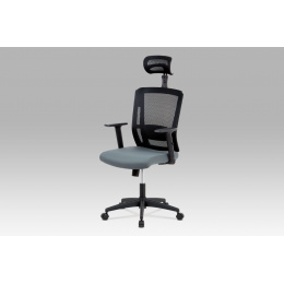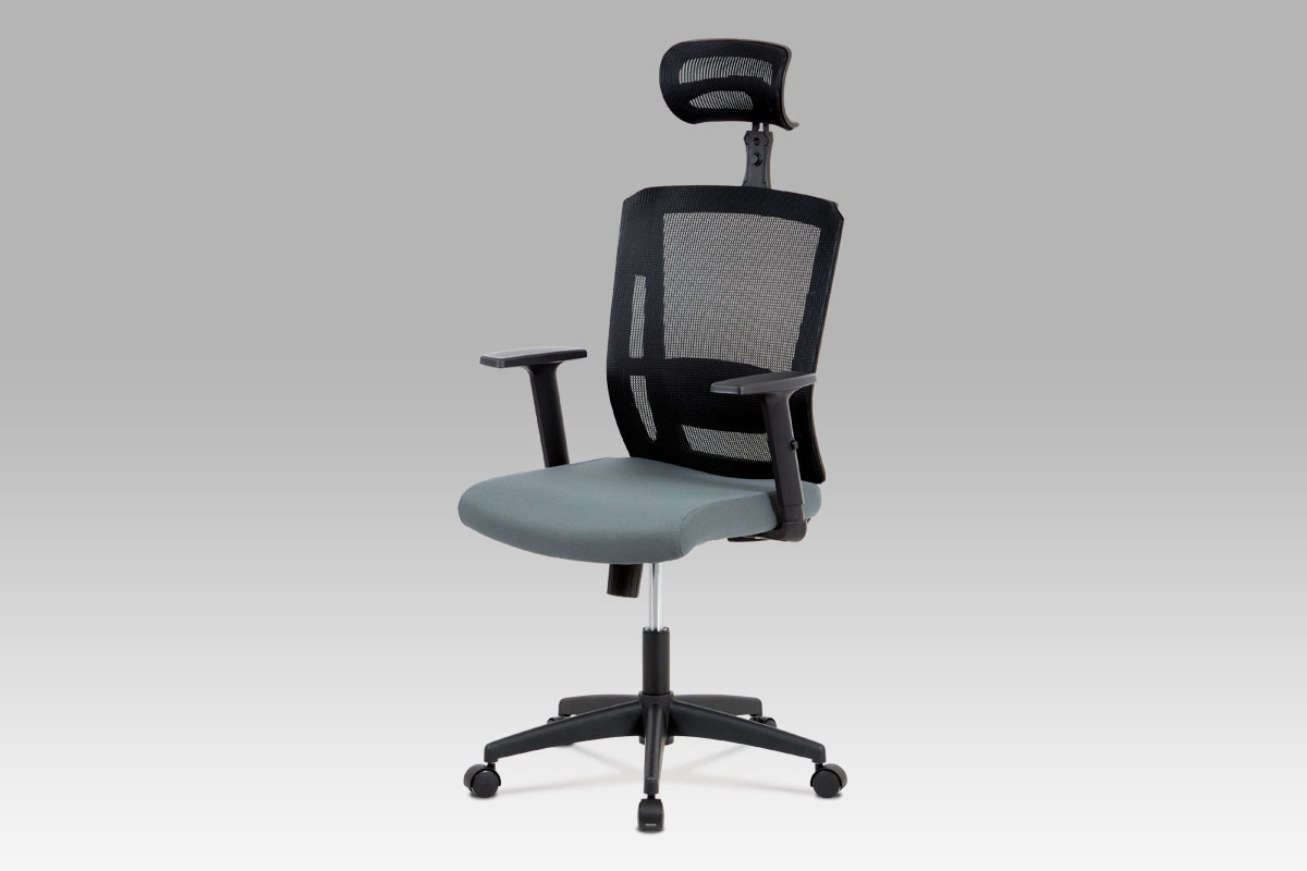 Kancelářská židle se síťovaným opěrákem v černé barvě a šedým látkovým sedákem. Židle je výškově nastavitelná, vybavená houpacím mechanismem. Výškově nastavitelné plastové područky, síťovaná, výškově nastavitelná a polohovací opěrka hlavy a nastavitelná bederní opěrka. Plastový kříž s plastovými kolečky vhodnými na koberce.