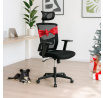 Kancelářská židle s podhlavníkem a potahem z černé látky a prodyšné síťoviny mesh nabízí komfortní sezení s důrazem na ergonomii. Opěradlo je vybaveno nastavitelnou bederní opěrkou, která podporuje správné držení těla, a výškově nastavitelným podhlavníkem pro optimální oporu krční páteře. Sedák je čalouněný kvalitní látkou, která zajišťuje pohodlí i při dlouhodobém používání. Houpací mechanismus umožňuje plynulé naklápění s možností aretace v základní poloze, zatímco 1D jednosměrně nastavitelné područky přispívají k individuálnímu přizpůsobení. Plastový kříž s pěti kolečky poskytuje stabilitu a snadnou mobilitu. Židle je výškově nastavitelná a vhodná pro běžné kancelářské použití.