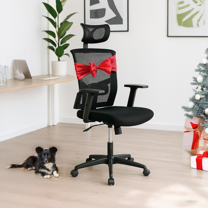Kancelářská židle s podhlavníkem a potahem z černé látky a prodyšné síťoviny mesh nabízí komfortní sezení s důrazem na ergonomii. Opěradlo je vybaveno nastavitelnou bederní opěrkou, která podporuje správné držení těla, a výškově nastavitelným podhlavníkem pro optimální oporu krční páteře. Sedák je čalouněný kvalitní látkou, která zajišťuje pohodlí i při dlouhodobém používání. Houpací mechanismus umožňuje plynulé naklápění s možností aretace v základní poloze, zatímco 1D jednosměrně nastavitelné područky přispívají k individuálnímu přizpůsobení. Plastový kříž s pěti kolečky poskytuje stabilitu a snadnou mobilitu. Židle je výškově nastavitelná a vhodná pro běžné kancelářské použití.