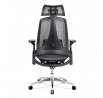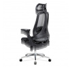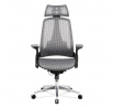 Kancelářská židle s šedou MESH síťovinou nabízí moderní a vzdušný design vhodný pro dlouhodobé sezení. Lankový synchronní mechanismus umožňuje plynulé nastavení opěráku i sedáku, včetně posuvu sedáku pro optimální ergonomii. Opěrák je vybaven výškově nastavitelnou bederní opěrkou a opěrkou hlavy, které podporují správné držení těla a snižují únavu během práce. Pevný kovový kříž zajišťuje stabilitu a odolnost, zatímco výškově nastavitelné područky přispívají k individuálnímu komfortu. Celkově je židle navržena pro dlouhou životnost a pohodlí v kancelářském prostředí.