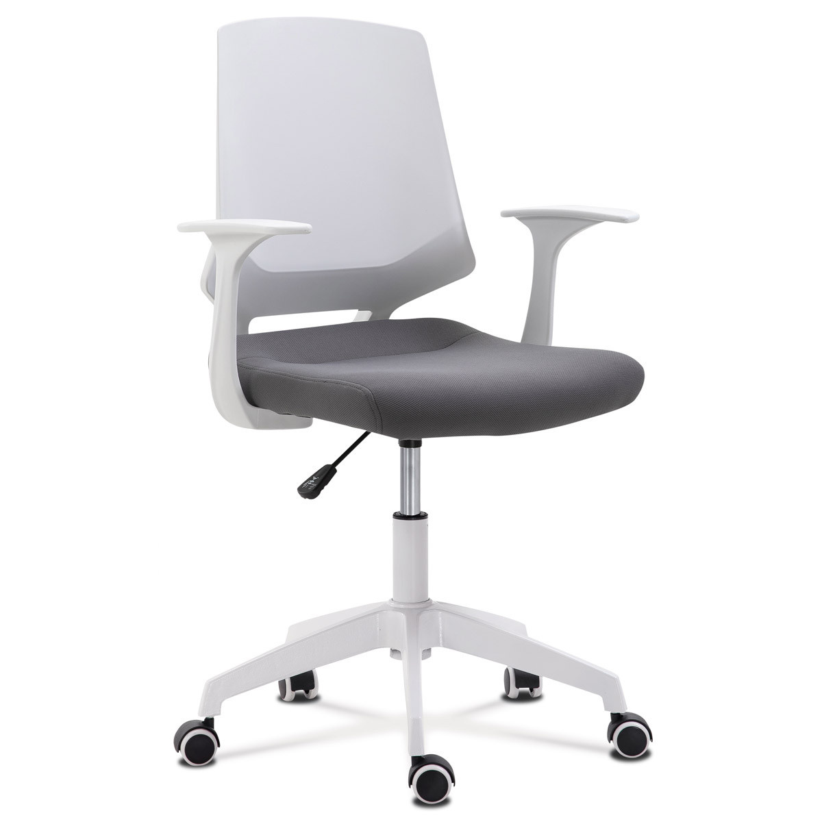 Kancelářská židle, sedák šedá látka, bílý PP plast, výškově nastavitelná