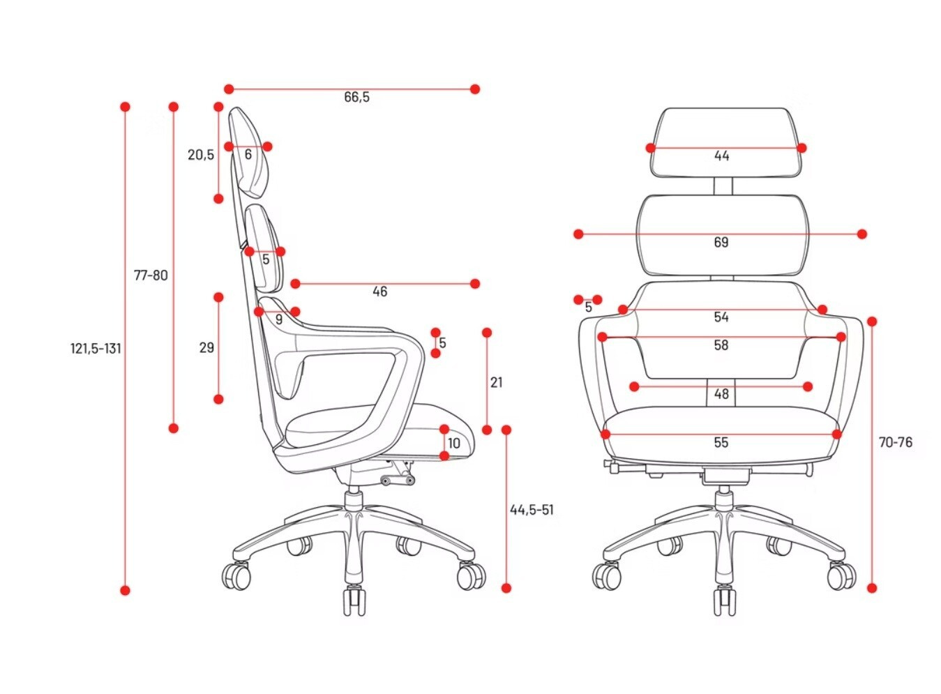 | Výška sedu - nastavitelná v cm | 44 - 51 |
