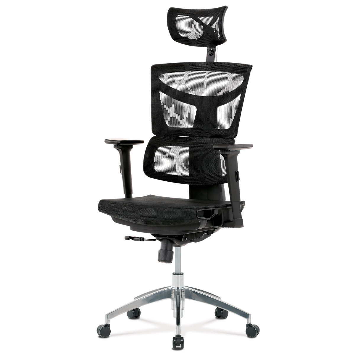 Kancelářské křeslo, potah černá plastová síťovina, HM s aretací., hliníkový kříž