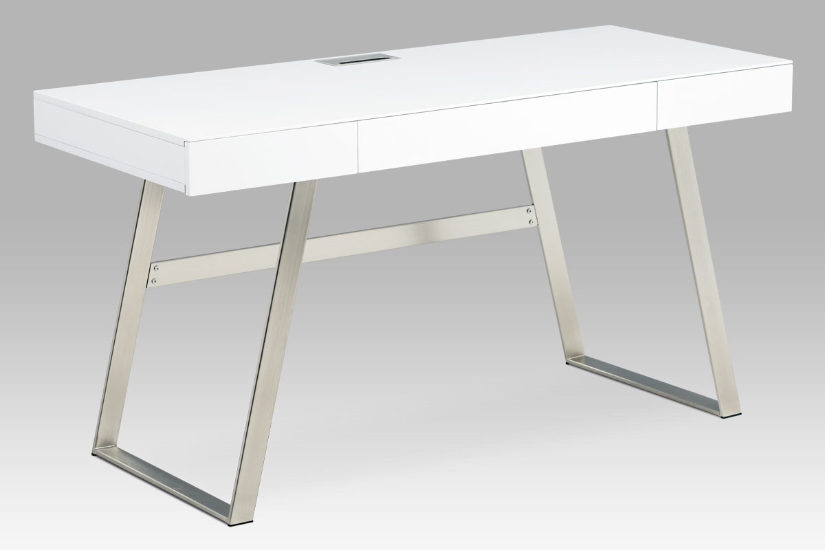 Kancelářský stůl 140x60, MDF, bílý matný lak, broušený nikl, 3 šuplíky