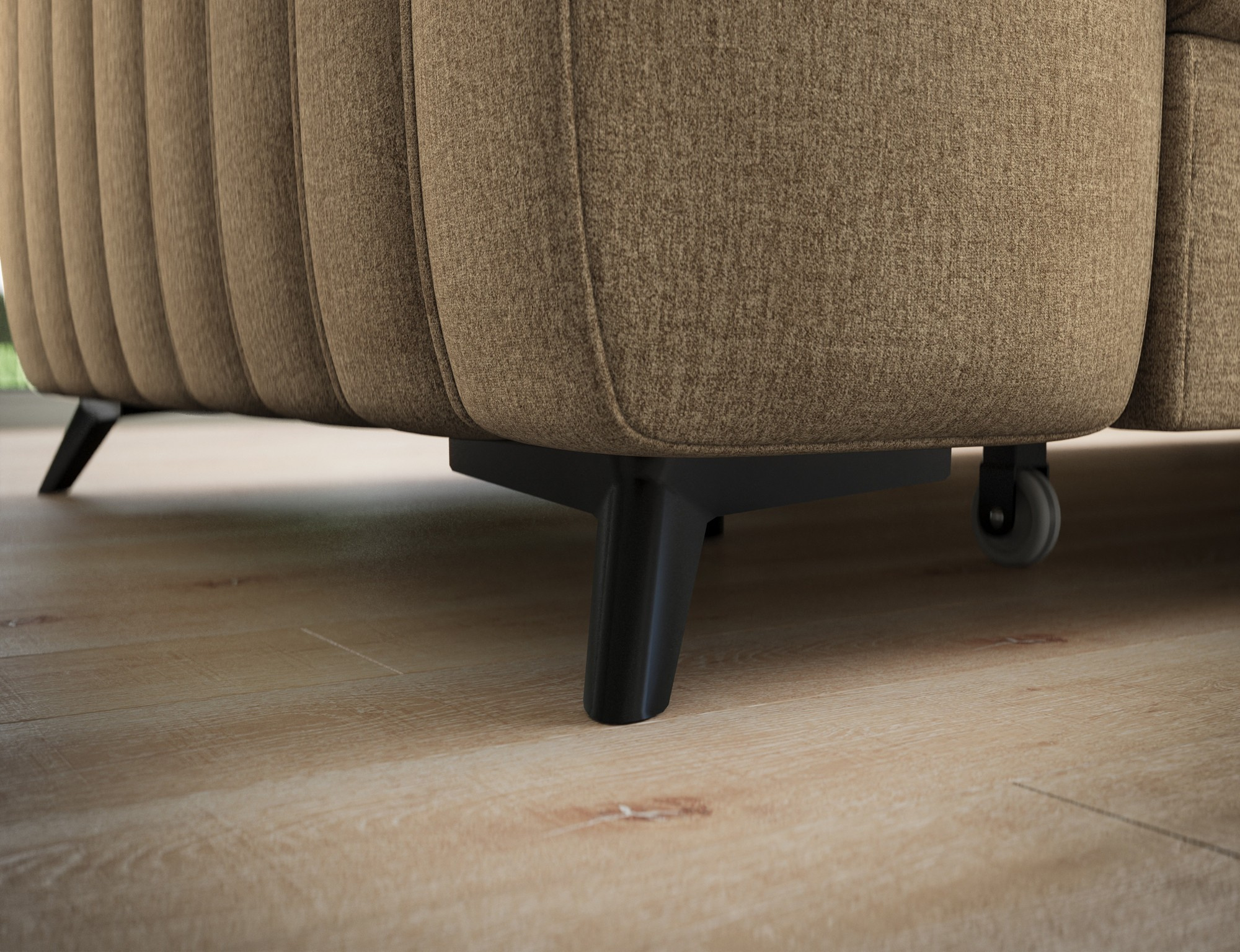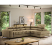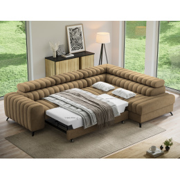 The Kanedo corner sofa is a designer and highly functional upholstered piece that combines modern aesthetics with exceptional comfort, making it an ideal choice for a spacious living room or relaxation area. With overall dimensions of 269 × 204 × 86 cm and a weight of 146.2 kg, this model stands out for its solid construction and carefully profiled elements that provide ergonomic body support and outstanding relaxation. The seat is equipped with Type B wave springs and a combination of T3030 foam and profiled HR3030 high-resilience foam, ensuring optimal elasticity, durability, and long-lasting seating comfort even with intensive use. The backrest, filled with T2130 polyurethane foam, offers stable support and enhances everyday comfort. The Kanedo corner sofa features a practical sleeping function with a surface of 194 × 124 cm, while the Dolphin mechanism allows for quick and effortless unfolding. An additional advantage is the spacious bedding storage compartment measuring 180 × 92 × 17 cm, providing convenient storage for textiles and making the Kanedo corner sofa an excellent choice for those looking for a modern corner sofa with a sleeping function, storage space, and durable, high-quality filling.