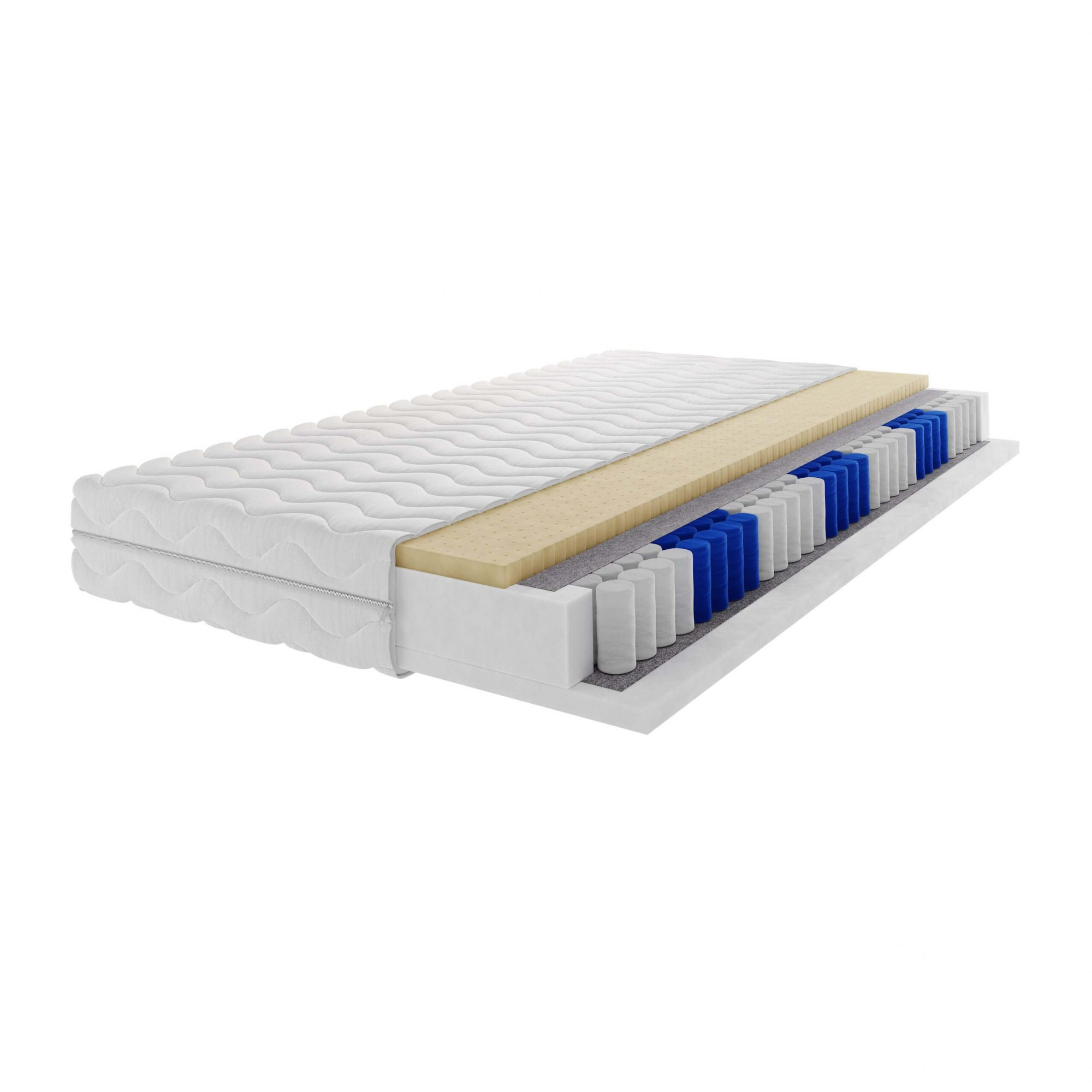 - Kapesní pružiny: Srdcem této matrace je systém kapesních pružin. Každá pružina je uložena v samostatné textilní kapsičce, což umožňuje individuální reakci na tlak a váhu těla. Díky tomu se matrace dokonale přizpůsobí vašim křivkám a poskytne optimální oporu páteři.