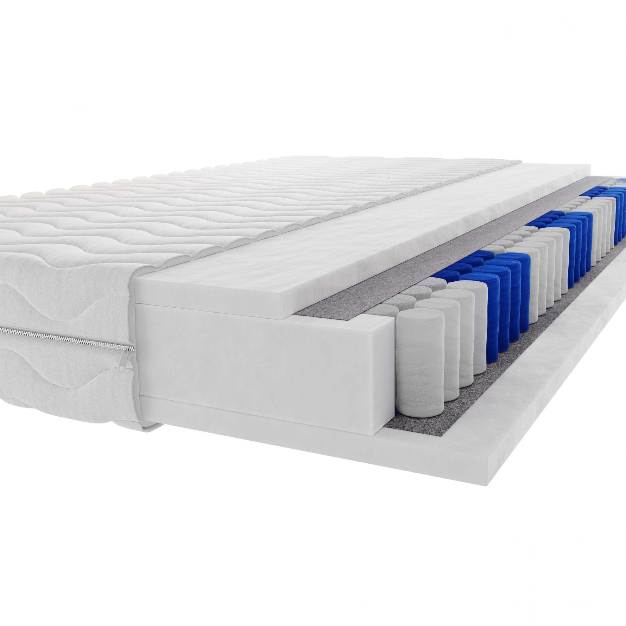 - Kapesní pružiny: Srdcem této matrace je systém kapesních pružin. Každá pružina je uložena v samostatné textilní kapsičce, což umožňuje individuální reakci na tlak a váhu těla. Díky tomu se matrace dokonale přizpůsobí vašim konturám a poskytne optimální oporu páteři.