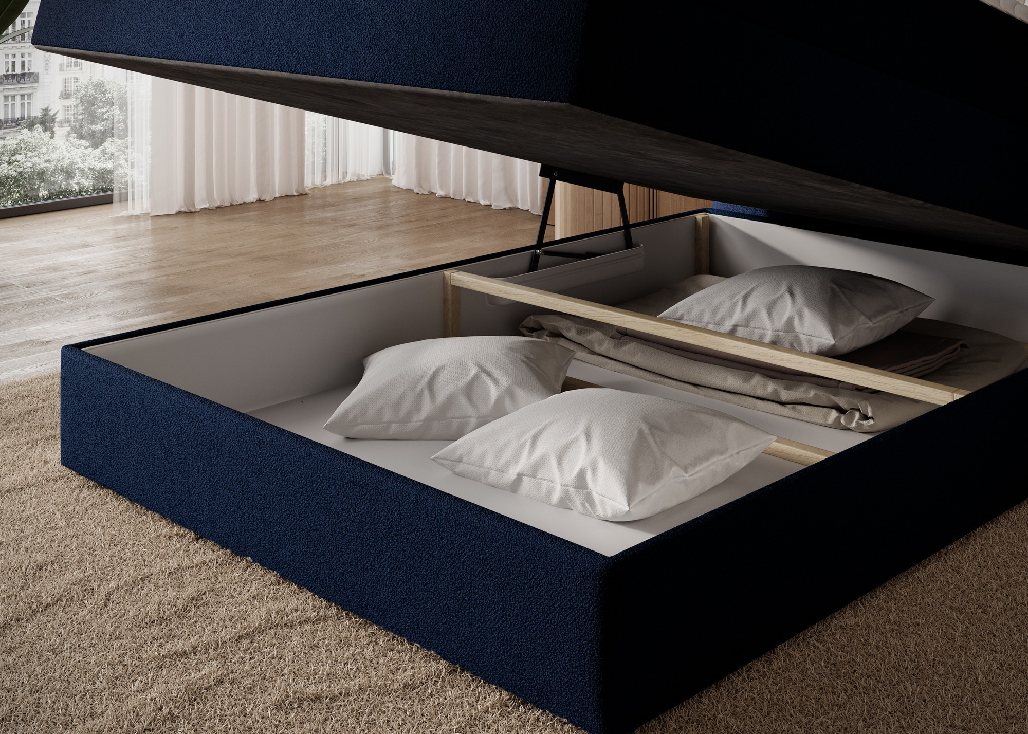 Kontinentální postel Kasped je moderní a funkční volbou pro každou ložnici, dostupná ve dvou velikostech: 215x121x108 cm a 215x141x108 cm, což umožňuje snadné přizpůsobení individuálním potřebám a rozměrům místnosti. Konstrukce postele je založena na pevném rámu vyrobeném z masivního dřeva a dřevotřísky, což zajišťuje dlouhotrvající stabilitu a odolnost. V srdci designu se nachází bonellová pružinová matrace, trvale připevněná k rámu, která poskytuje spolehlivou oporu těla a podporuje správnou cirkulaci vzduchu pro zdravý a ergonomický spánek. Navíc postel obsahuje dvě vrstvy vysoce kvalitní pěny – pěnu T2130 a pěnu T2540 – které v kombinaci s bonellovou pružinovou jednotkou zvyšují flexibilitu, pohodlí a přizpůsobení se konturám těla, což podporuje klidný a regenerační spánek. Celá struktura je definována čistými liniemi a moderní estetikou, doplněná černými nohami nábytku z odolného plastu, které přidávají vizuální lehkost a zároveň zajišťují konstrukční integritu. Vysoce praktickou funkcí je vestavěný úložný prostor na ložní prádlo, který poskytuje pohodlné místo pro uložení přikrývek, polštářů nebo jiných textilií, což pomáhá udržet ložnici čistou a uspořádanou. Postel Kasped kombinuje prvotřídní řemeslné zpracování, moderní design a každodenní funkčnost, což z ní činí ideální volbu jak pro moderní, tak i pro klasičtější interiérová uspořádání.