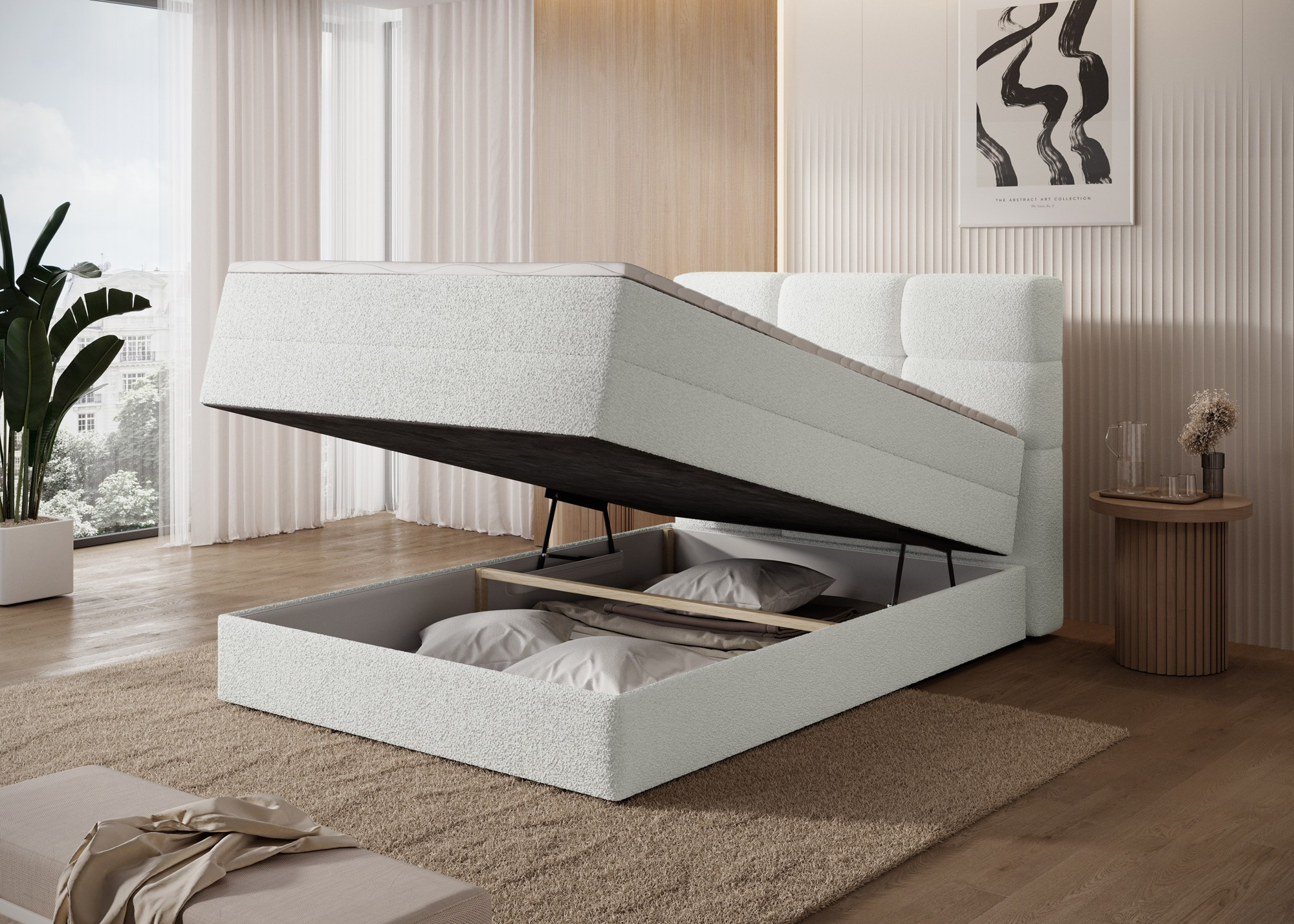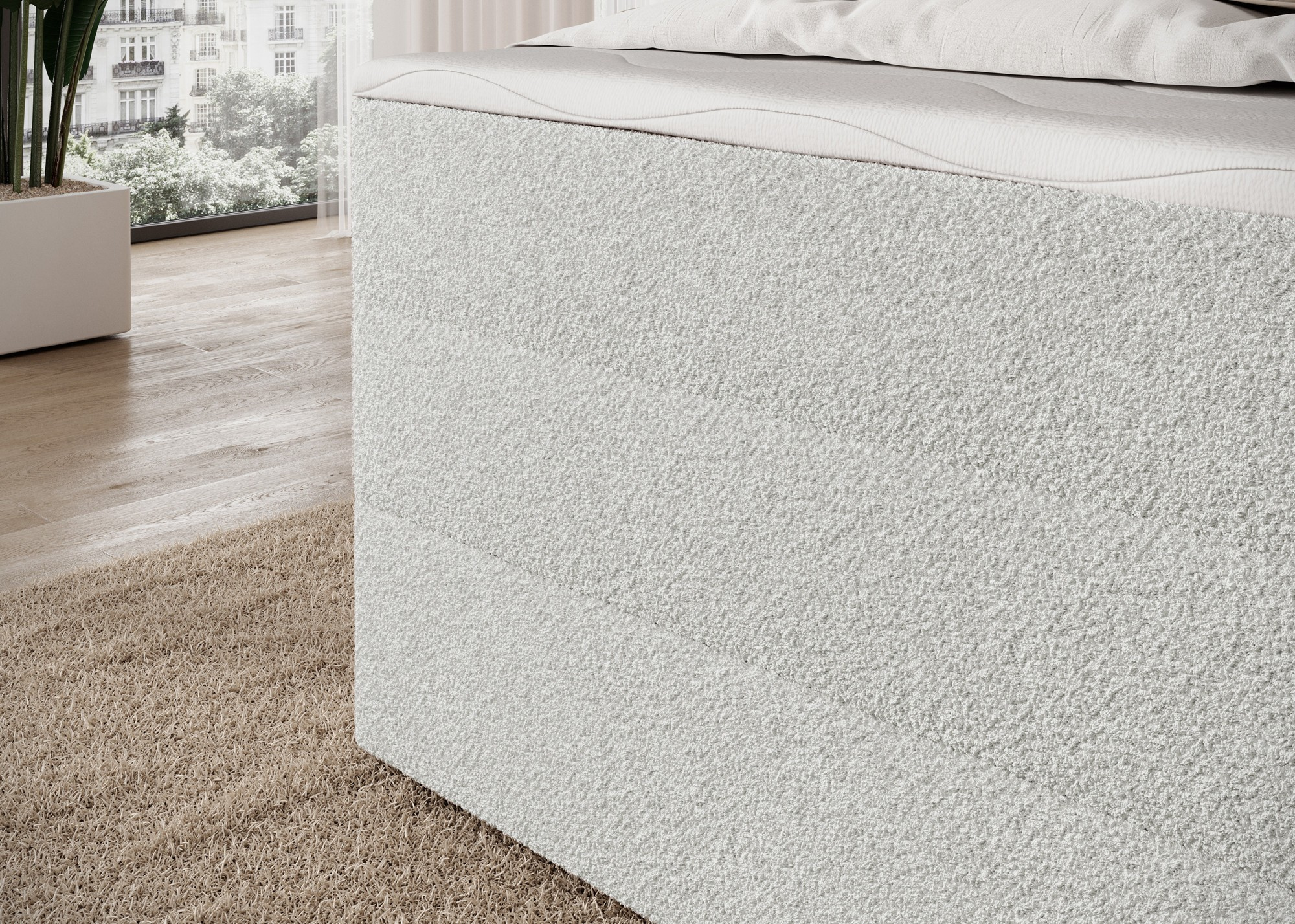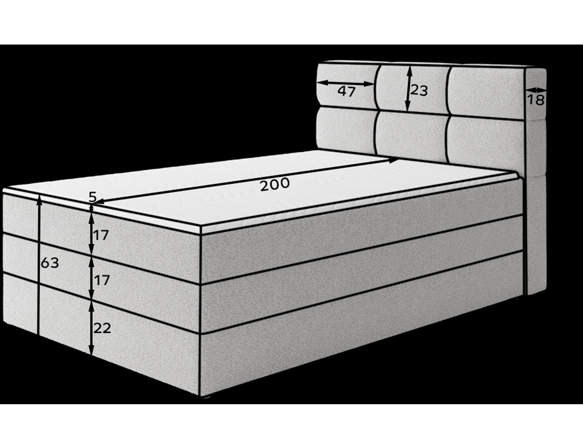Kontinentální postel Kasped je moderní a funkční volbou pro každou ložnici, dostupná ve dvou velikostech: 215x121x108 cm a 215x141x108 cm, což umožňuje snadné přizpůsobení individuálním potřebám a rozměrům místnosti. Konstrukce postele je založena na pevném rámu vyrobeném z masivního dřeva a dřevotřísky, což zajišťuje dlouhotrvající stabilitu a odolnost. V srdci designu se nachází bonellová pružinová matrace, trvale připevněná k rámu, která poskytuje spolehlivou oporu těla a podporuje správnou cirkulaci vzduchu pro zdravý a ergonomický spánek. Navíc postel obsahuje dvě vrstvy vysoce kvalitní pěny – pěnu T2130 a pěnu T2540 – které v kombinaci s bonellovou pružinovou jednotkou zvyšují flexibilitu, pohodlí a přizpůsobení se konturám těla, což podporuje klidný a regenerační spánek. Celá struktura je definována čistými liniemi a moderní estetikou, doplněná černými nohami nábytku z odolného plastu, které přidávají vizuální lehkost a zároveň zajišťují konstrukční integritu. Vysoce praktickou funkcí je vestavěný úložný prostor na ložní prádlo, který poskytuje pohodlné místo pro uložení přikrývek, polštářů nebo jiných textilií, což pomáhá udržet ložnici čistou a uspořádanou. Postel Kasped kombinuje prvotřídní řemeslné zpracování, moderní design a každodenní funkčnost, což z ní činí ideální volbu jak pro moderní, tak i pro klasičtější interiérová uspořádání.