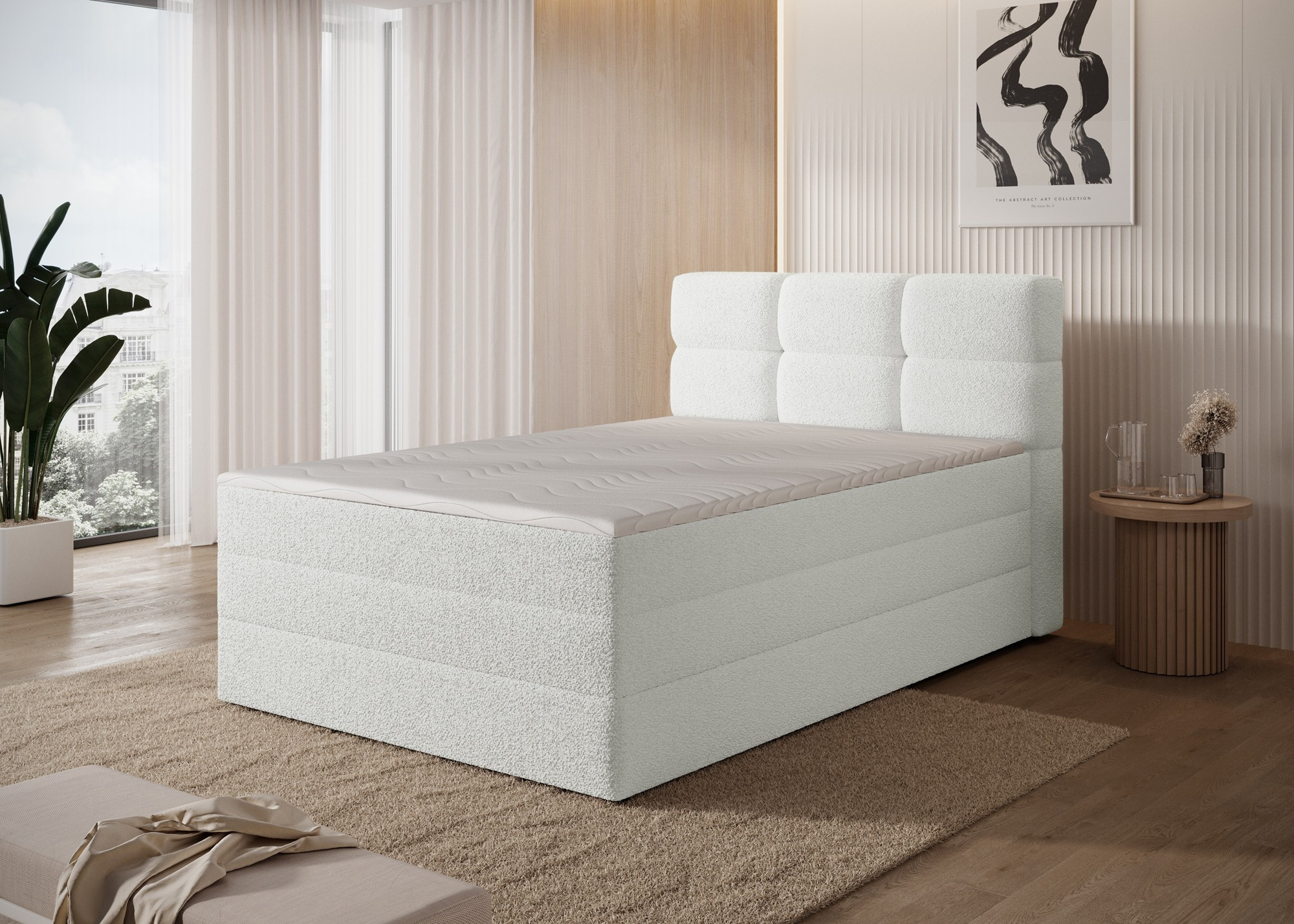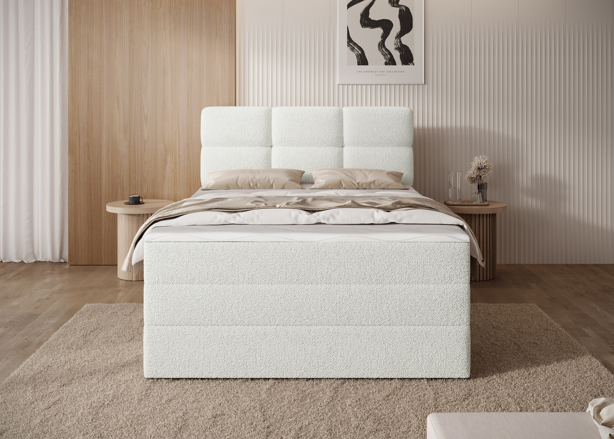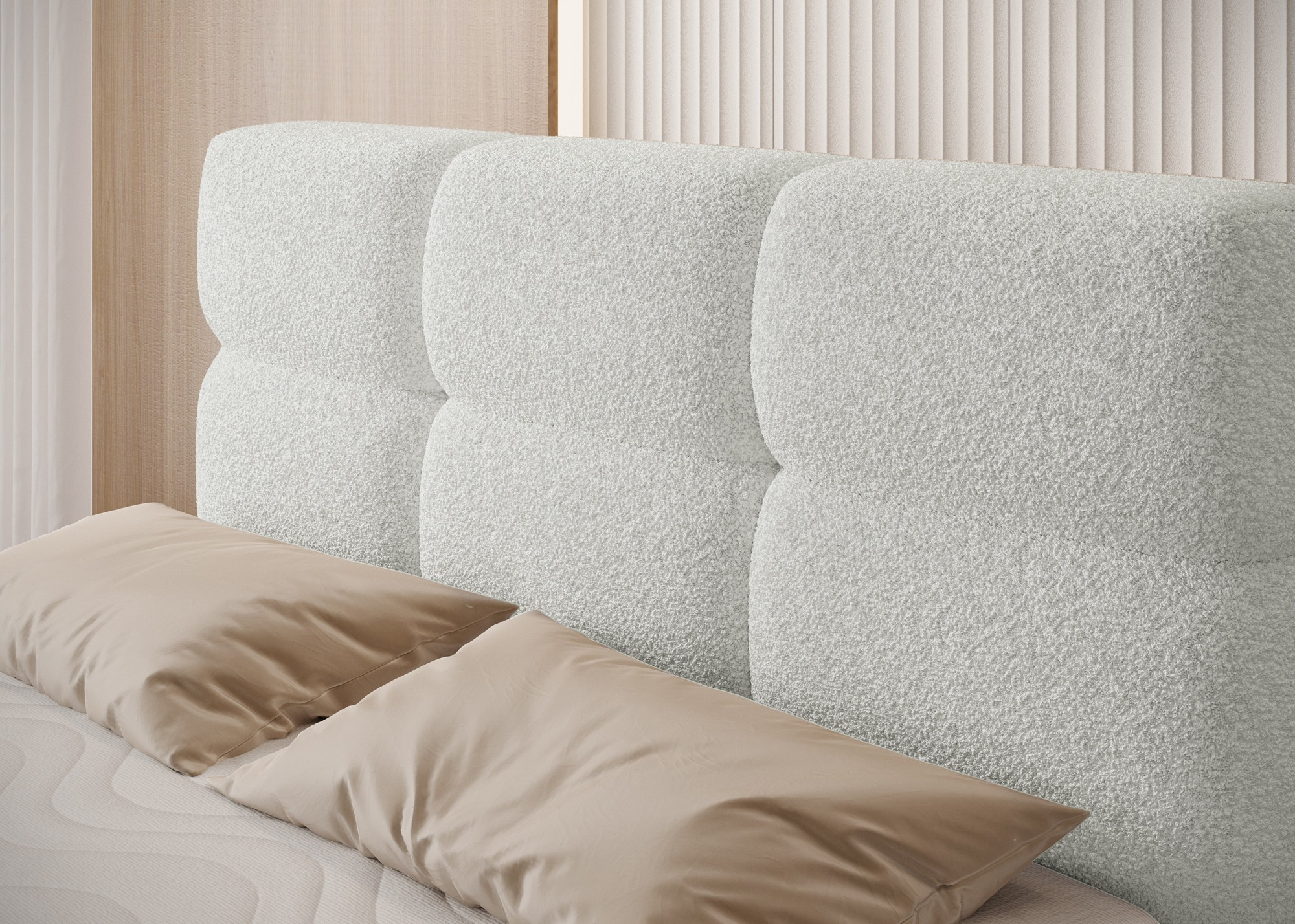Kontinentální postel Kasped je moderní a funkční volbou pro každou ložnici, dostupná ve dvou velikostech: 215x121x108 cm a 215x141x108 cm, což umožňuje snadné přizpůsobení individuálním potřebám a rozměrům místnosti. Konstrukce postele je založena na pevném rámu vyrobeném z masivního dřeva a dřevotřísky, což zajišťuje dlouhotrvající stabilitu a odolnost. V srdci designu se nachází bonellová pružinová matrace, trvale připevněná k rámu, která poskytuje spolehlivou oporu těla a podporuje správnou cirkulaci vzduchu pro zdravý a ergonomický spánek. Navíc postel obsahuje dvě vrstvy vysoce kvalitní pěny – pěnu T2130 a pěnu T2540 – které v kombinaci s bonellovou pružinovou jednotkou zvyšují flexibilitu, pohodlí a přizpůsobení se konturám těla, což podporuje klidný a regenerační spánek. Celá struktura je definována čistými liniemi a moderní estetikou, doplněná černými nohami nábytku z odolného plastu, které přidávají vizuální lehkost a zároveň zajišťují konstrukční integritu. Vysoce praktickou funkcí je vestavěný úložný prostor na ložní prádlo, který poskytuje pohodlné místo pro uložení přikrývek, polštářů nebo jiných textilií, což pomáhá udržet ložnici čistou a uspořádanou. Postel Kasped kombinuje prvotřídní řemeslné zpracování, moderní design a každodenní funkčnost, což z ní činí ideální volbu jak pro moderní, tak i pro klasičtější interiérová uspořádání.