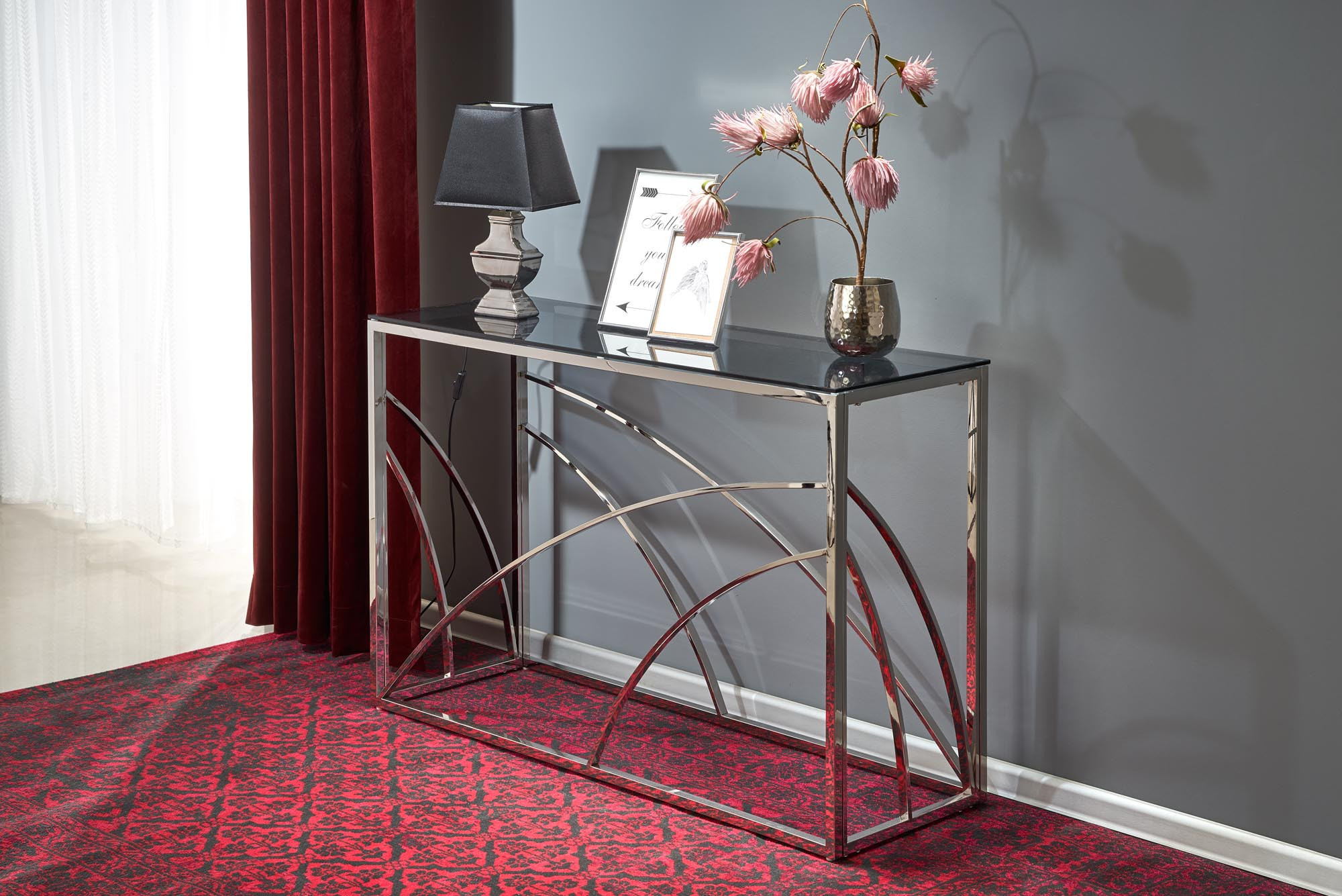 rozměry: 120/40/78 cm, materiál: sklo / chromovaná ocel, barva: kouřová / stříbrná