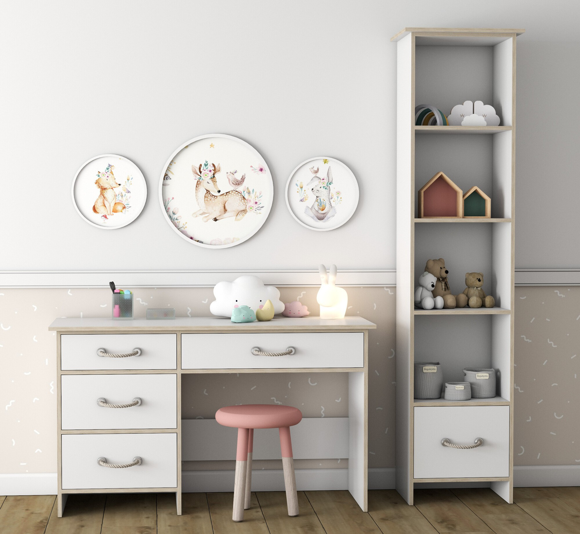 Systém COSMO je praktický nábytek do dětského pokoje, který okouzlí ozdobnými úchytkami v námořnickém stylu.