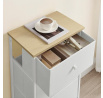 Komoda AUK-E1031 WT značky Autronic nabízí praktické řešení úložného prostoru v kompaktním provedení o rozměrech 45x30x92 cm. Je vyrobena z MDF desek s matnou povrchovou úpravou v dekoru dub, která dodává nábytku přírodní vzhled a snadnou údržbu. Stabilní kovová podnož zajišťuje pevnost a dlouhou životnost, zatímco čtyři látkové zásuvky z netkané textilie poskytují lehký a flexibilní úložný prostor vhodný pro odkládání drobností i oblečení. Komoda je navíc vybavena rozkládacím mechanismem, který umožňuje snadné rozšíření úložné kapacity podle potřeby. Díky svému jednoduchému designu a neutrálním barvám se hodí do různých interiérů, kde oceníte kombinaci funkčnosti a decentního stylu.