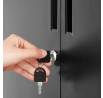 Úložná skříňka Autronic v černém provedení je vyrobena z pevného kovu s práškovou povrchovou úpravou, která zajišťuje odolnost proti poškození a snadnou údržbu. Nabízí tři vnitřní police, které poskytují dostatek prostoru pro organizaci dokumentů, kancelářských potřeb nebo drobných předmětů. Dveře jsou vybaveny praktickým zamykacím mechanismem pro bezpečné uložení obsahu. Stabilní kovové nohy s nastavitelnými patkami umožňují vyrovnání na nerovném povrchu a zvyšují celkovou stabilitu skříňky. Rozměry 80 x 40 x 100 cm ji předurčují pro využití v kancelářích i domácnostech, kde je potřeba efektivní a bezpečné úložiště.