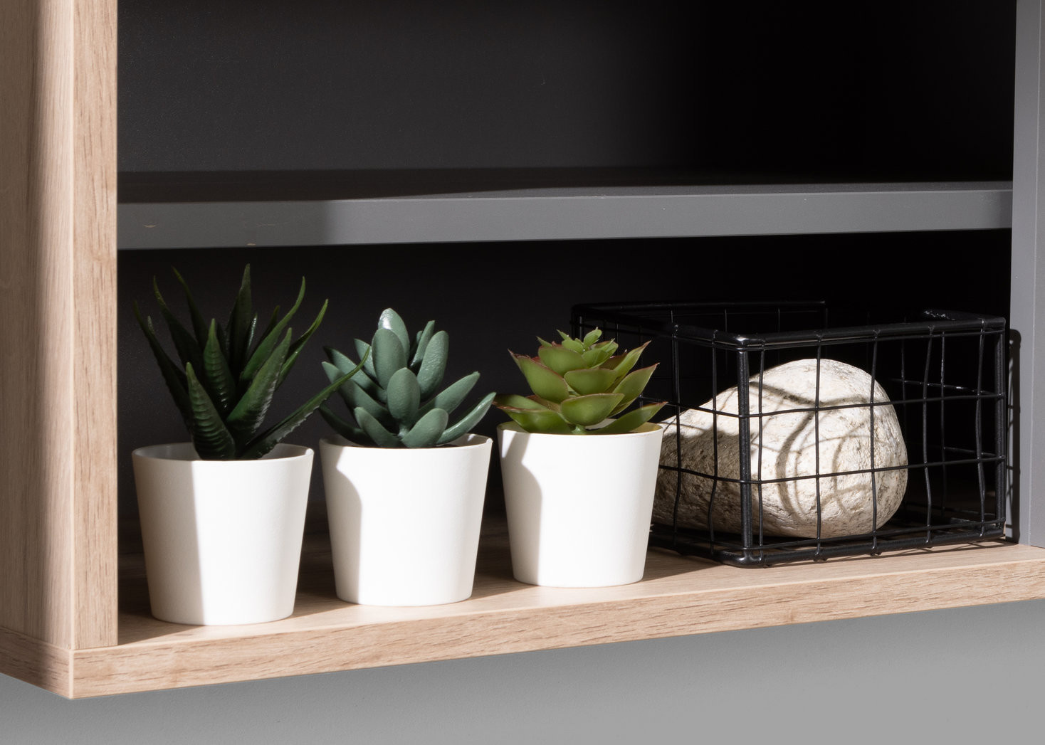 Systém ALLMO je vyroben v barevném provedení Dub Estana světlá / Antracit. Korpus nábytku je vyroben v barevném odstínu Dub Estana světlá.
