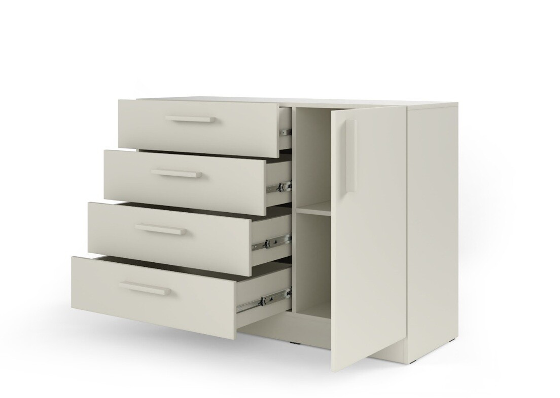 Tato kombinovaná komoda nabízí dostatek úložného prostoru pro všechny vaše potřeby. S šířkou 121 cm, výškou 85 cm a hloubkou 40 cm poskytuje dostatek místa pro uložení oblečení, dokumentů nebo jiných osobních věcí. Její promyšlený design zahrnuje jak zásuvky, tak police, což umožňuje efektivní organizaci a snadný přístup ke všem uloženým předmětům.