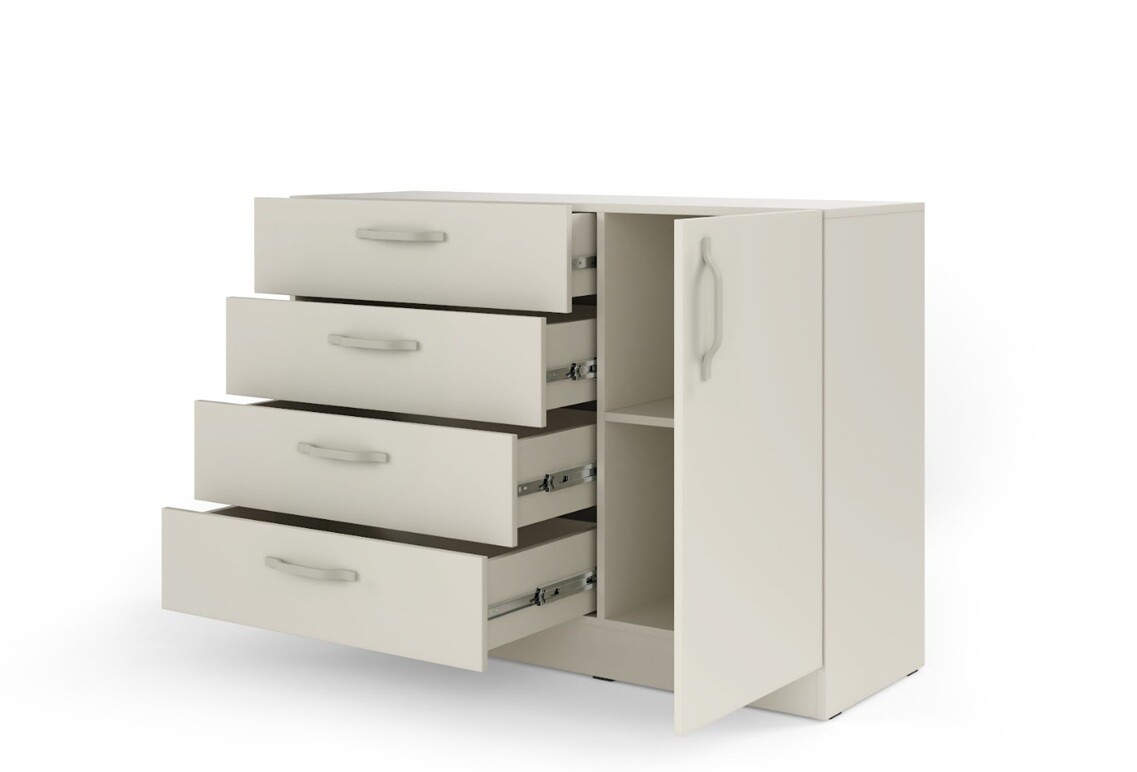 Tato kombinovaná komoda nabízí dostatek úložného prostoru pro všechny vaše potřeby. S šířkou 121 cm, výškou 85 cm a hloubkou 40 cm poskytuje dostatek místa pro uložení oblečení, dokumentů nebo jiných osobních věcí. Její promyšlený design zahrnuje jak zásuvky, tak police, což umožňuje efektivní organizaci a snadný přístup ke všem uloženým předmětům.