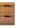 Praktická komoda z kolekce FONTI v barvě dub karamel. Po stranách nábytku najdeme skříňky s jednou policí, do kterých se vejde mnoho věcí. Uprostřed komody nás přivítá skříňka s proskleným čelem, ve které najdeme polici rozdělující prostor na polovinu. Nad skříňkou najdeme poličku na různé drobnosti.