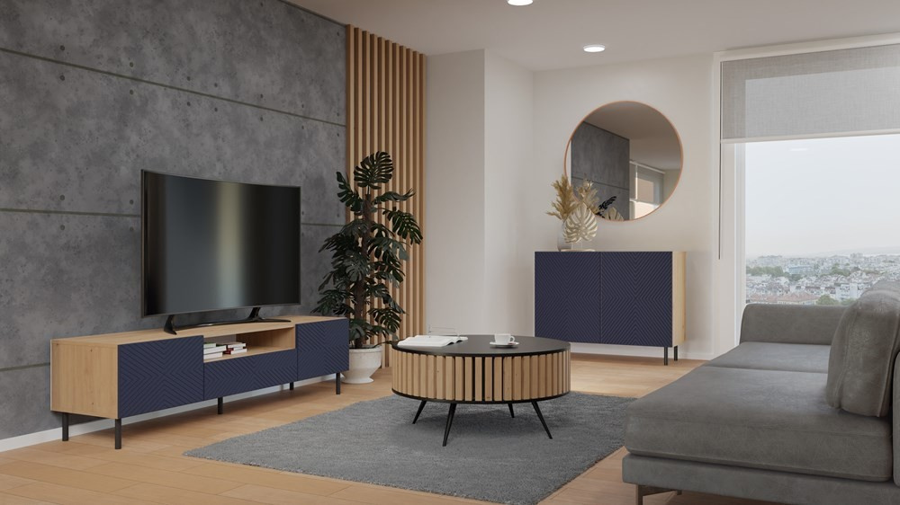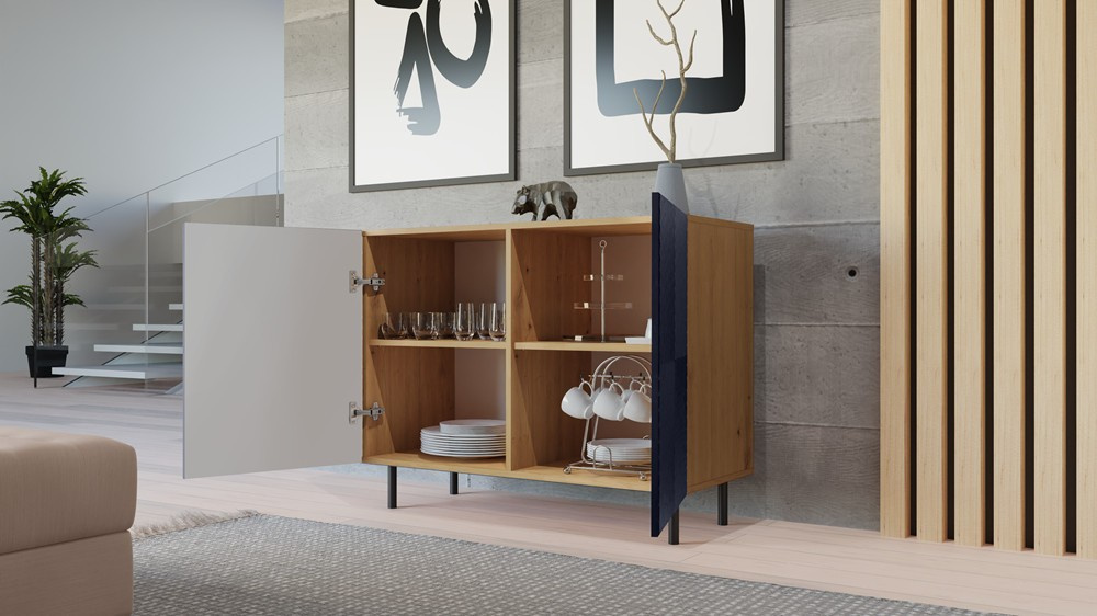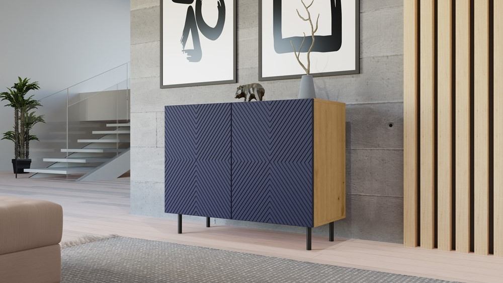 Komoda KARIS 2D-K, Dub artisan/Modrá