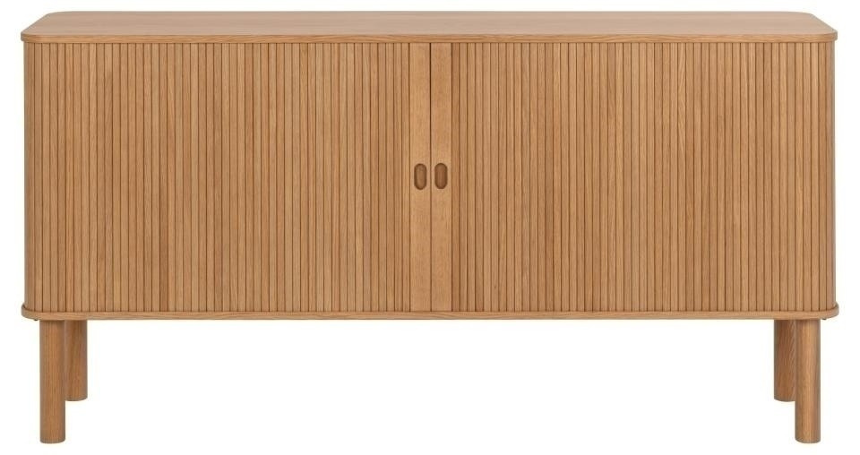 Vneste kouzlo do svého domova díky dřevěné kredenci Langley. Vyrobený v obdélníkové formě se zaoblenými rohy, nábytek spojuje moderní a přírodní estetiku, díky čemuž se hodí do různých stylů interiérů. Dekorativní lišty, zaoblený charakter a lakované dubové akcenty definují charakteristický vzhled příborníku. Uvnitř kredence se nacházejí 2 nastavitelné police zajišťující pohodlné ukládání. Kredenc Langley, deska a rám dubová dýha lakovaná PU, 2 dveře dubová dýha lakovaná NC, 2 police dub melamin, základna dub lakovaný NC, s lamelovým čelem, posuvnými dveřmi a žaluziovými dvířky, 160x40x80 cm Materiál rámu a čel: MDF a dubová dýha. Materiál základny: dubové dřevo. Vyžaduje samostatnou montáž Rozměry: 152,5x59,5x8,5 cm a 167,547,5x8,5 cm