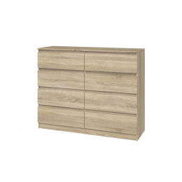 Nadčasová komoda Malvína v minimalistickém designu nabízí díky svému provedení dostatek úložného prostoru a univerzální použití v kterékoliv místnosti vašeho bytu či domu. Bezúchytková čela zásuvek zajistí pohodlné používání a dokreslí moderní a útulný charakter vašeho interiéru. Komoda je vyrobena ze snadno udržovatelného lamina, hrany jsou zakončené vysoce odolným ABS materiálem.