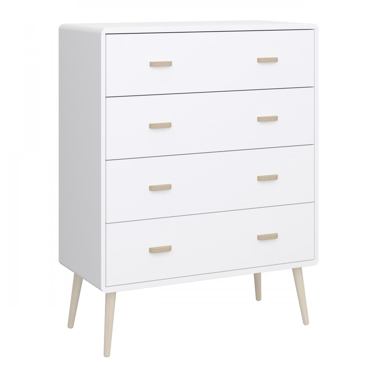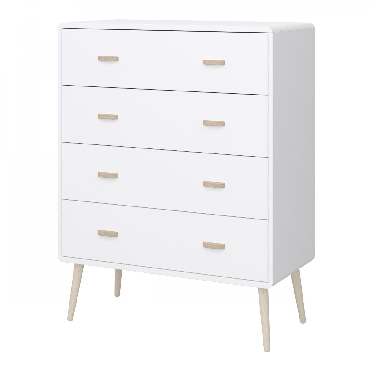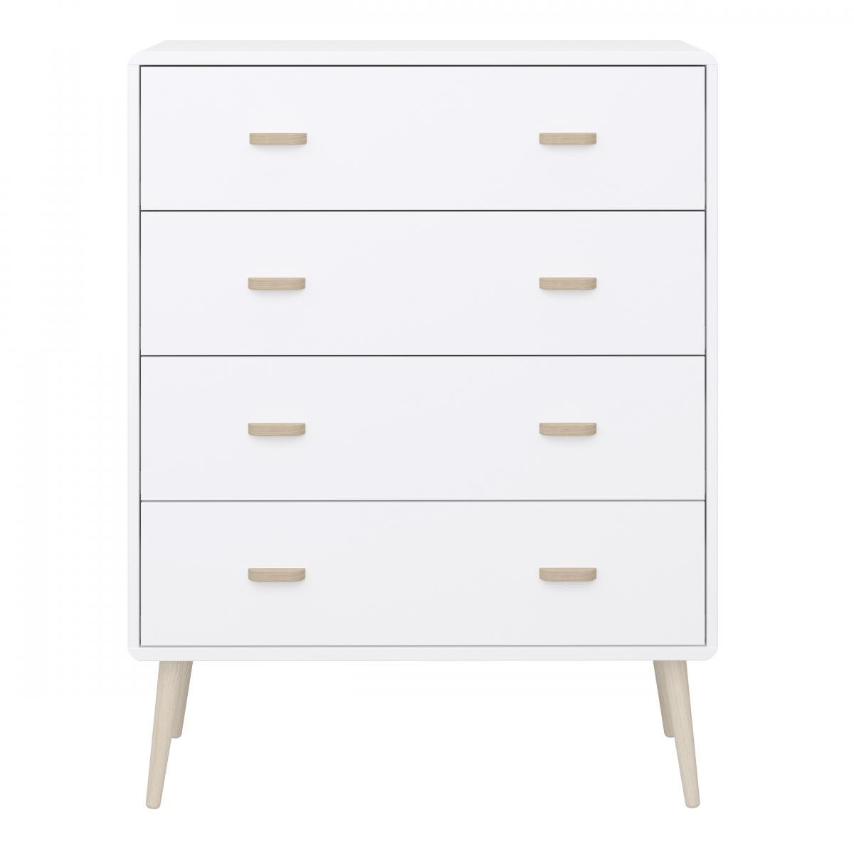 Série Miva dánského výrobce je moderní a stylová řada jasně inspirovaná severským minimalismem. Nábytek vyjadřuje jemnost, styl a klasickou eleganci díky širokým dubovým úchytkám a kulatým nožkám ze stejného materiálu. Sortiment této řady vyrobené z odolného MDF dřeva tvoří komody, noční stolky, botník a také stůl ve stejně vkusném designu. Zboží je dodáváno v demontu, součástí je schematický návod na montáž.
