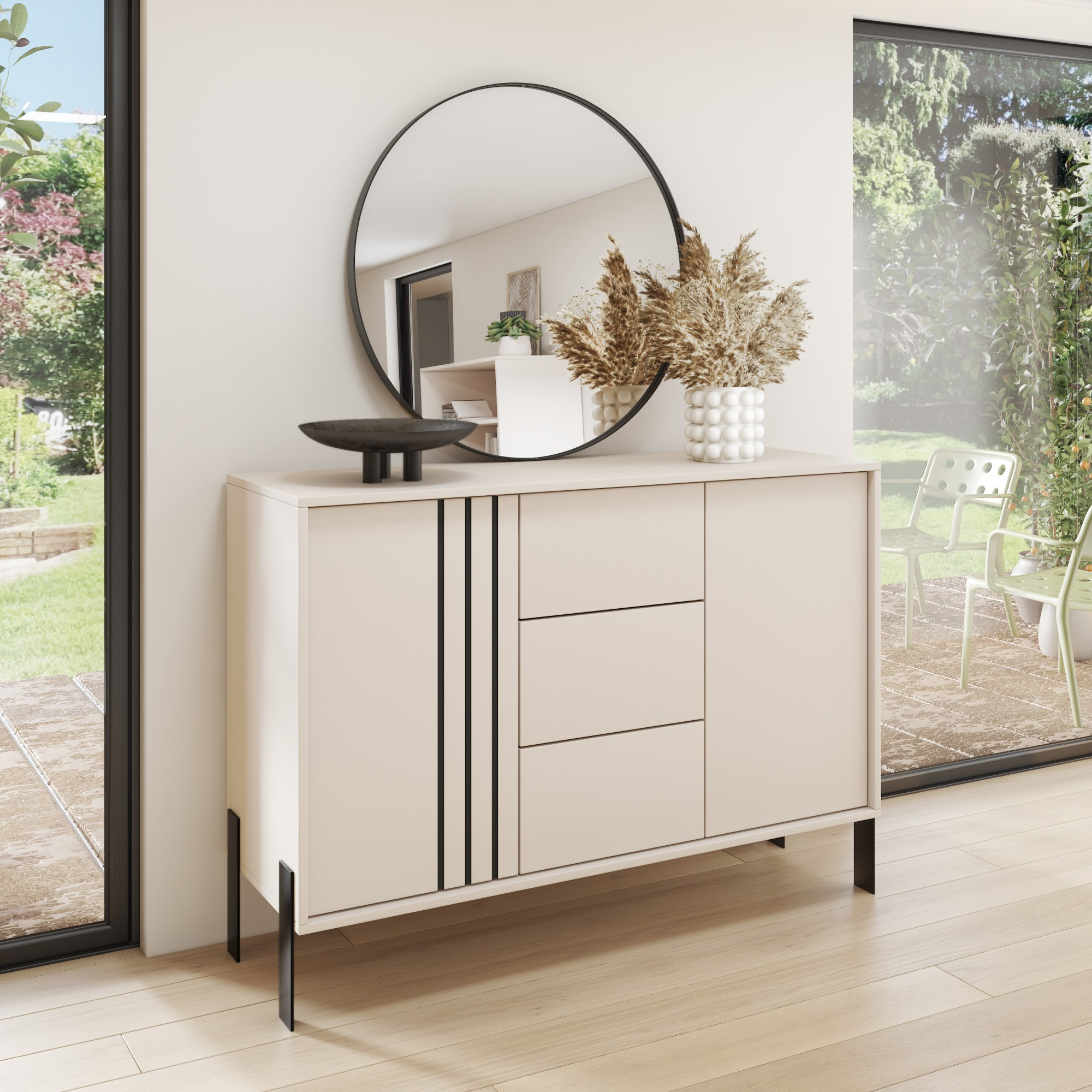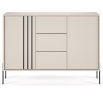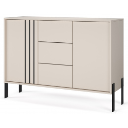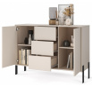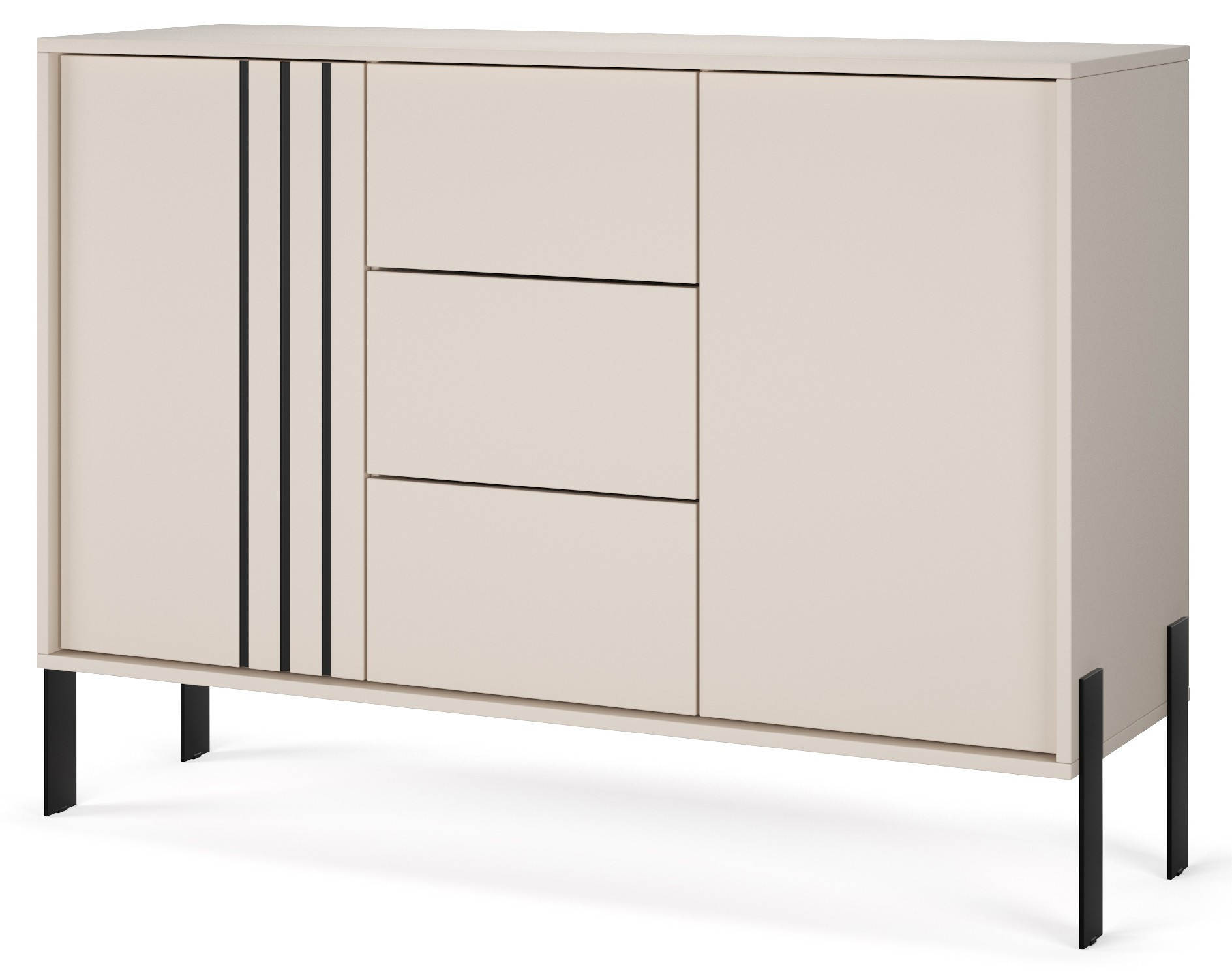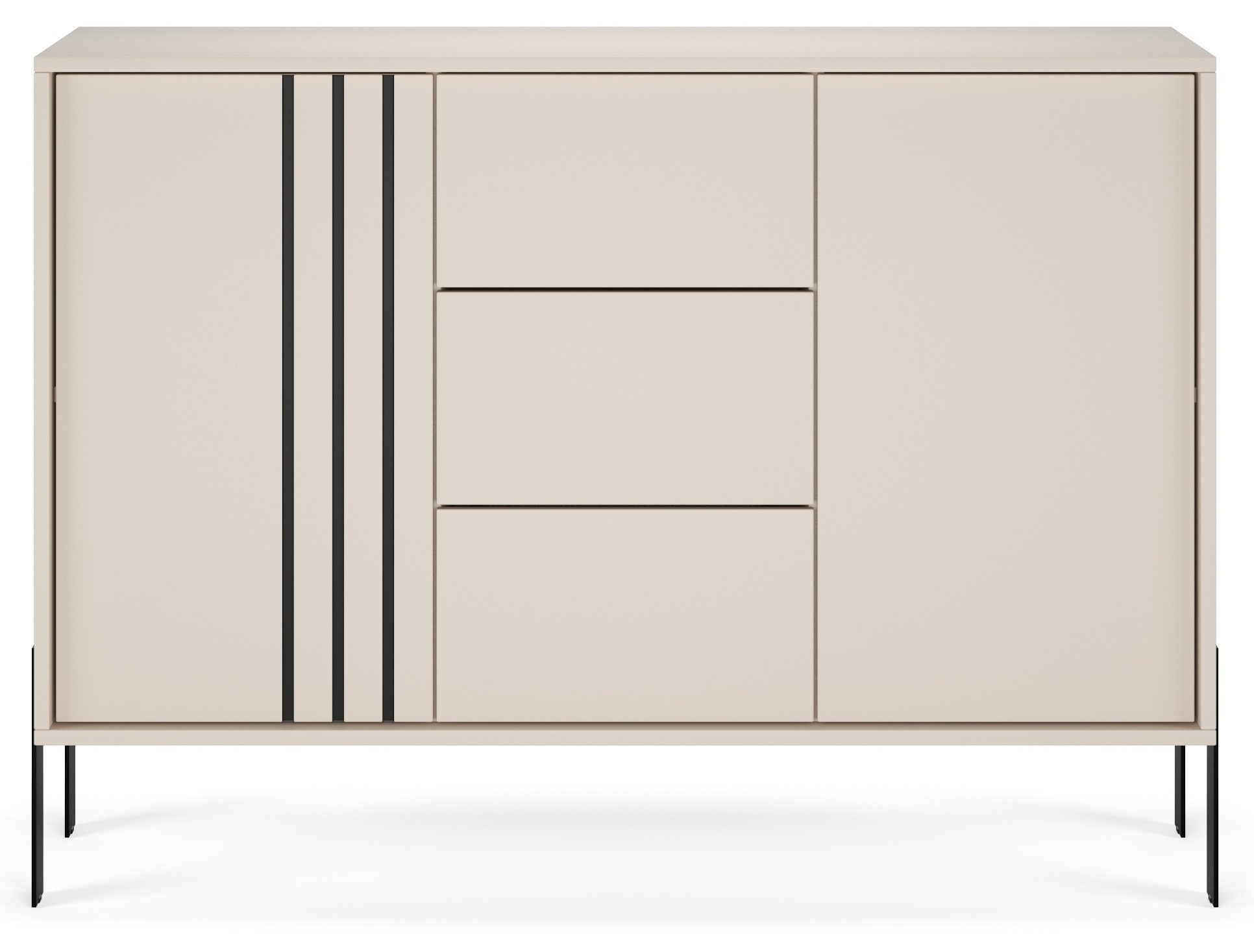 Komoda **Nexo** je moderní a funkční nábytek, který se skvěle hodí do obývacího pokoje, ložnice nebo předsíně. Jednoduchá forma v kombinaci s elegantními detaily způsobuje, že komoda se dokonale hodí do moderních a loftových interiérů. Čela v dekoru **Artisan** odkazují na přirozenou strukturu dřeva, vnášejí do místnosti teplo a útulný charakter. Verze **Kašmír** je naopak elegantní, tlumená barevnost, která se skvěle hodí k moderním interiérům. Charakteristickým prvkem kolekce jsou dekorativní černé lišty na čelní straně a stabilní **kovové nohy**, které dodávají nábytku lehkost a zdůrazňují jeho moderní styl.