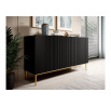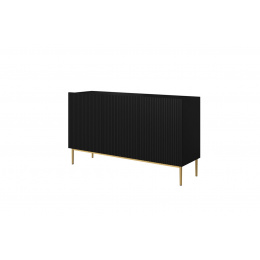 Nicole 150 cm komoda s drážkovaným čelem na kovových nohách - černý mat / zlaté nohy, šířka: 150, výška: 85, hloubka: 45, výška nohou: 20