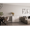 Komoda Rizo je nejen skvělým doplňkem k bytové stěně Rizo. Stejně výborně poslouží jako samostatný kus nábytku. Komoda má univerzální využití a nabízí dostatek úložného prostoru. Komoda je vyrobena z odolného a stálobarevného lamina. Komoda je dodávaná v demontu. Součástí balení je schematický montážní návod, včetně všech potřebných spojovacích prvků. Vyobrazené doplňky a dekorace nejsou v ceně. Vlivem nastavení monitorů, nebo displejů telefonů, se zobrazení barev na fotograii může od skutečnosti lišit.