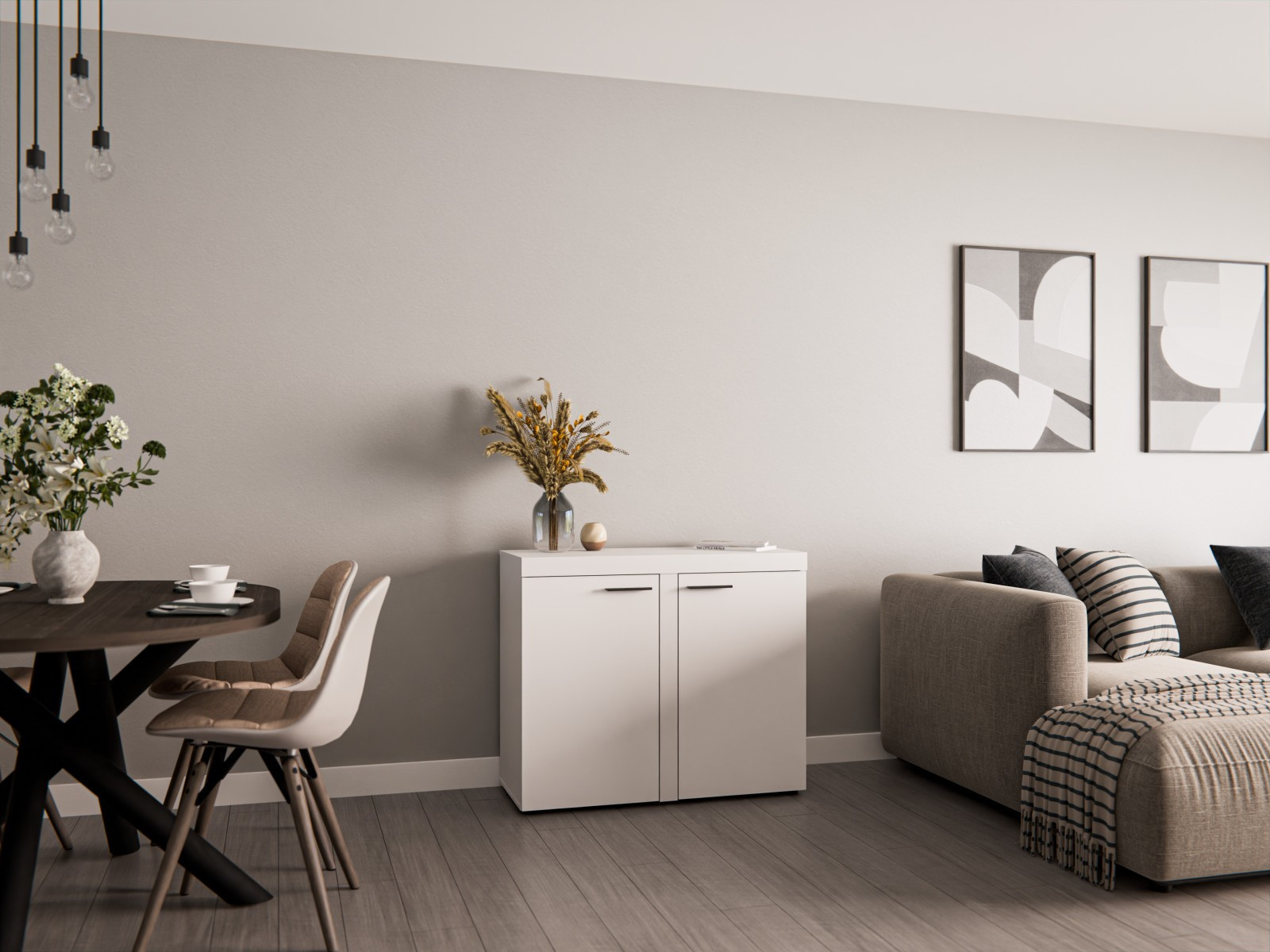 Komoda Rizo je nejen skvělým doplňkem k bytové stěně Rizo. Stejně výborně poslouží jako samostatný kus nábytku. Komoda má univerzální využití a nabízí dostatek úložného prostoru. Komoda je vyrobena z odolného a stálobarevného lamina. Komoda je dodávaná v demontu. Součástí balení je schematický montážní návod, včetně všech potřebných spojovacích prvků. Vyobrazené doplňky a dekorace nejsou v ceně. Vlivem nastavení monitorů, nebo displejů telefonů, se zobrazení barev na fotograii může od skutečnosti lišit.