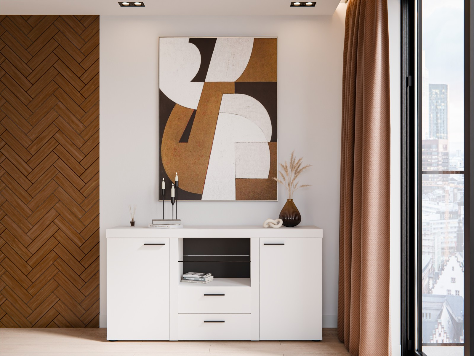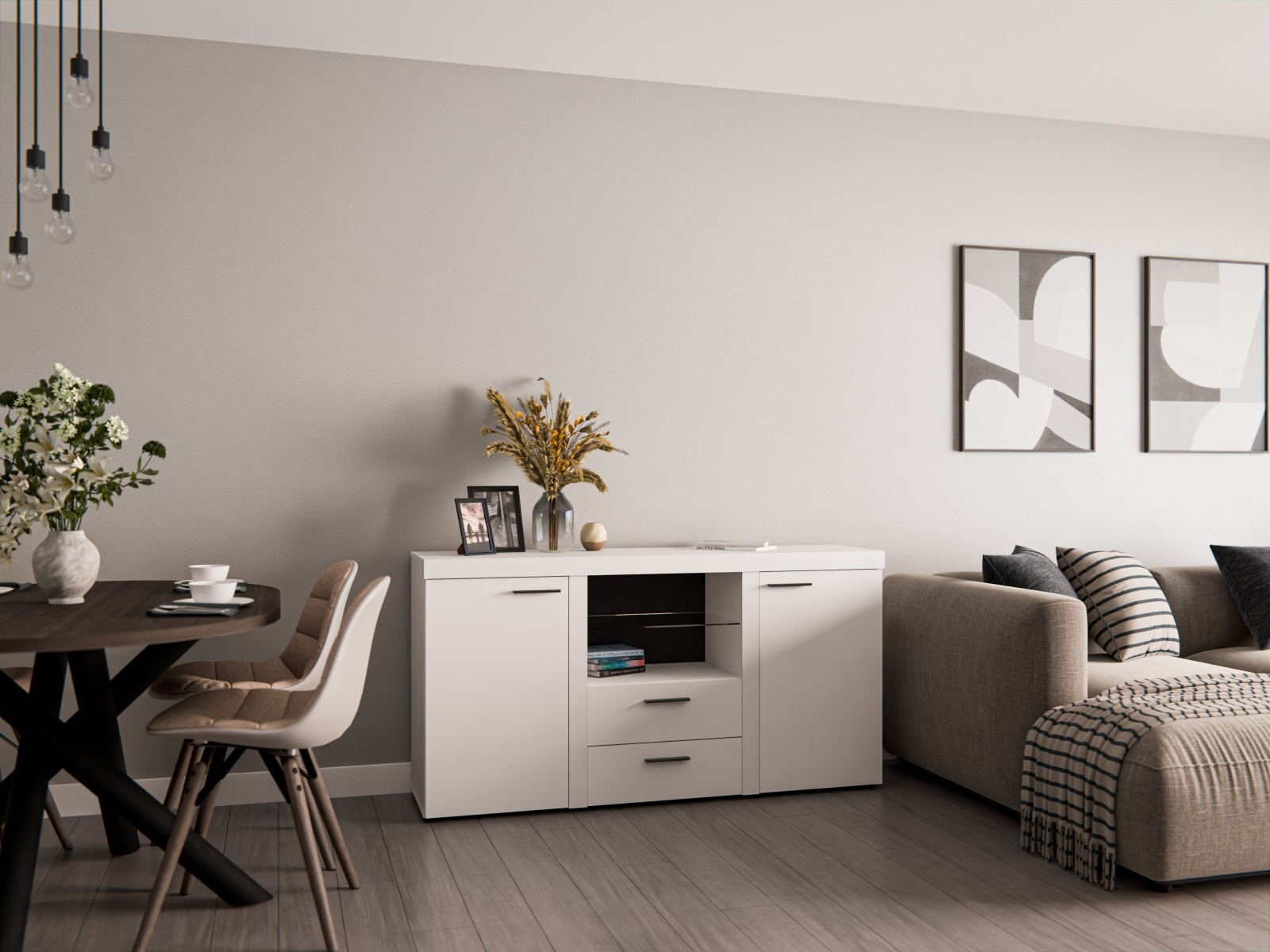 Komoda Rizo je nejen skvělým doplňkem k bytové stěně Rizo. Stejně výborně poslouží jako samostatný kus nábytku. Komoda má univerzální využití a nabízí dostatek úložného prostoru. Komoda je vyrobena z odolného a stálobarevného lamina. Komoda je dodávaná v demontu. Součástí balení je schematický montážní návod, včetně všech potřebných spojovacích prvků. Vyobrazené doplňky, LED osvětlení a dekorace nejsou v ceně. Vlivem nastavení monitorů, nebo displejů telefonů, se zobrazení barev na fotograii může od skutečnosti lišit.
