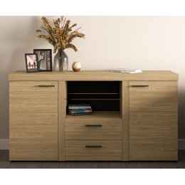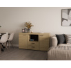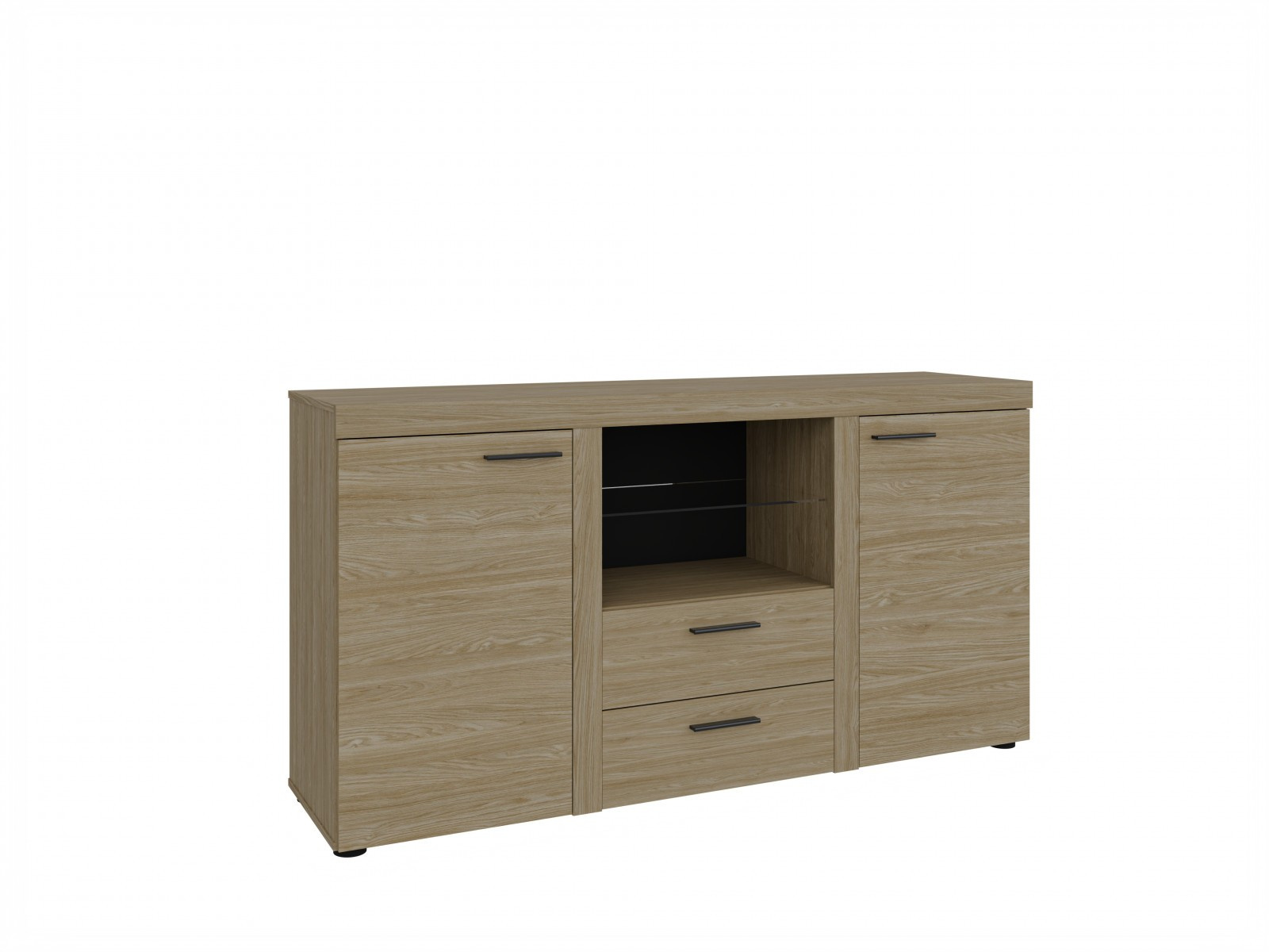 Komoda Rizo je nejen skvělým doplňkem k bytové stěně Rizo. Stejně výborně poslouží jako samostatný kus nábytku. Komoda má univerzální využití a nabízí dostatek úložného prostoru. Komoda je vyrobena z odolného a stálobarevného lamina. Komoda je dodávaná v demontu. Součástí balení je schematický montážní návod, včetně všech potřebných spojovacích prvků. Vyobrazené doplňky, LED osvětlení a dekorace nejsou v ceně.
